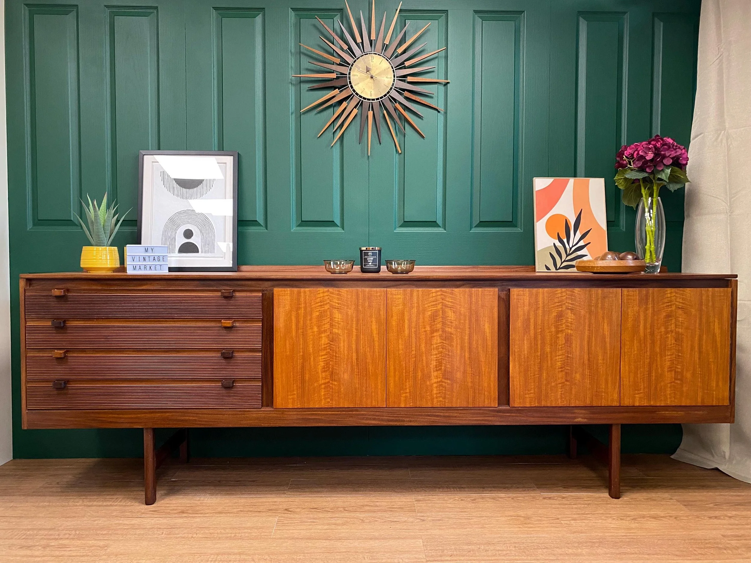 Mid Century 1960s Robert Heritage Knightsbridge Sideboard Produced By Archie Shine Ltd For Heals Solid Afromosia With Teak