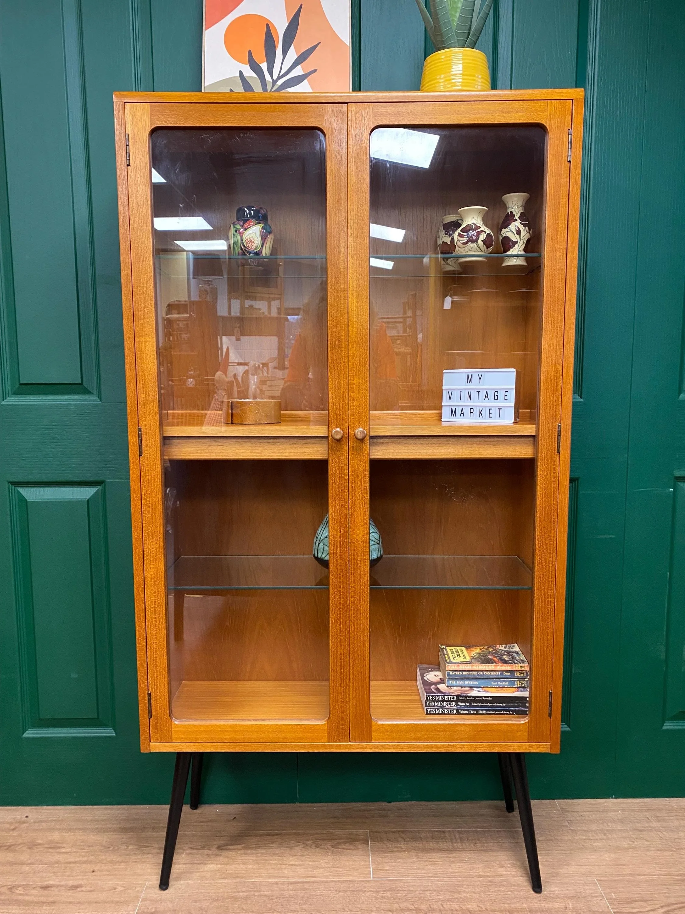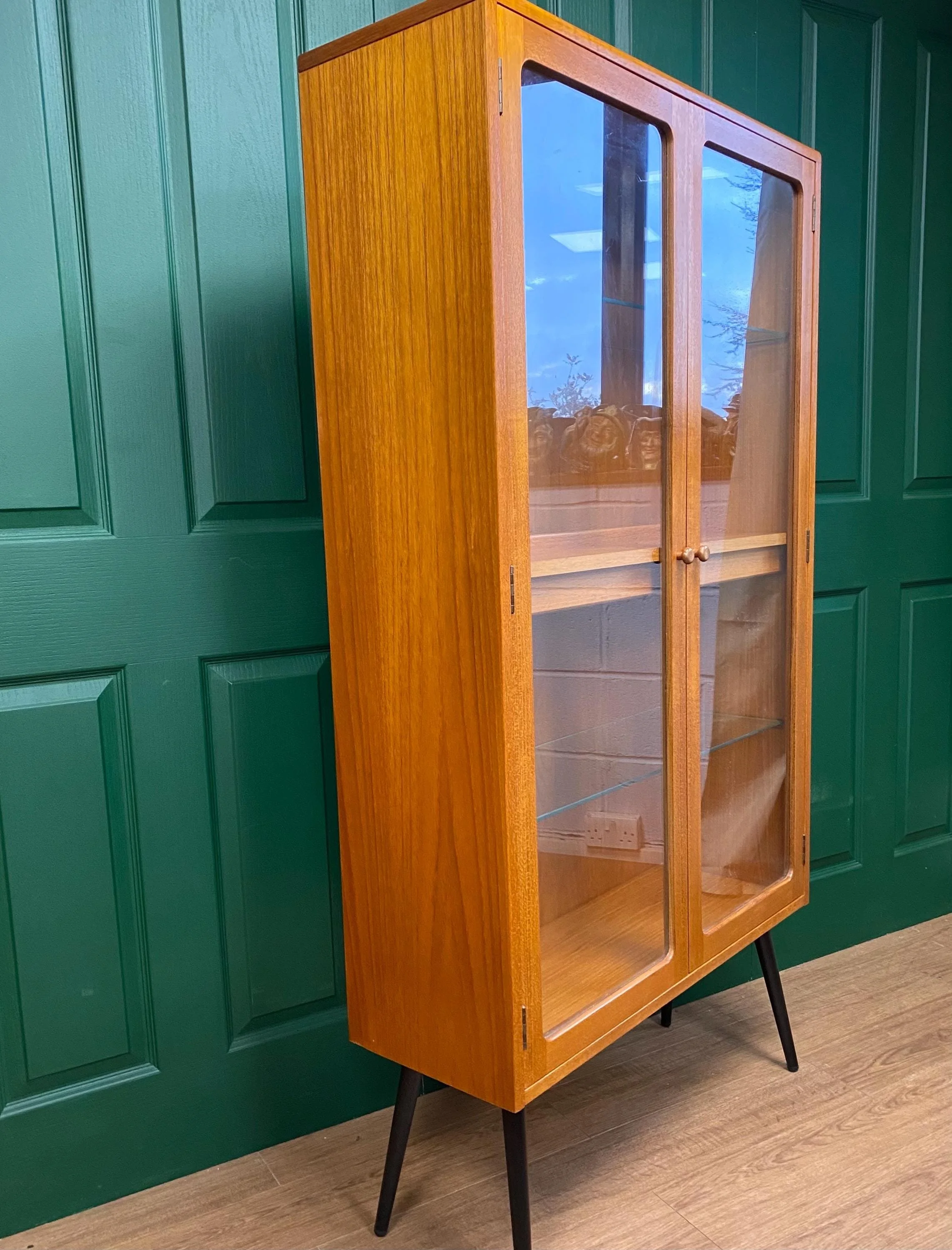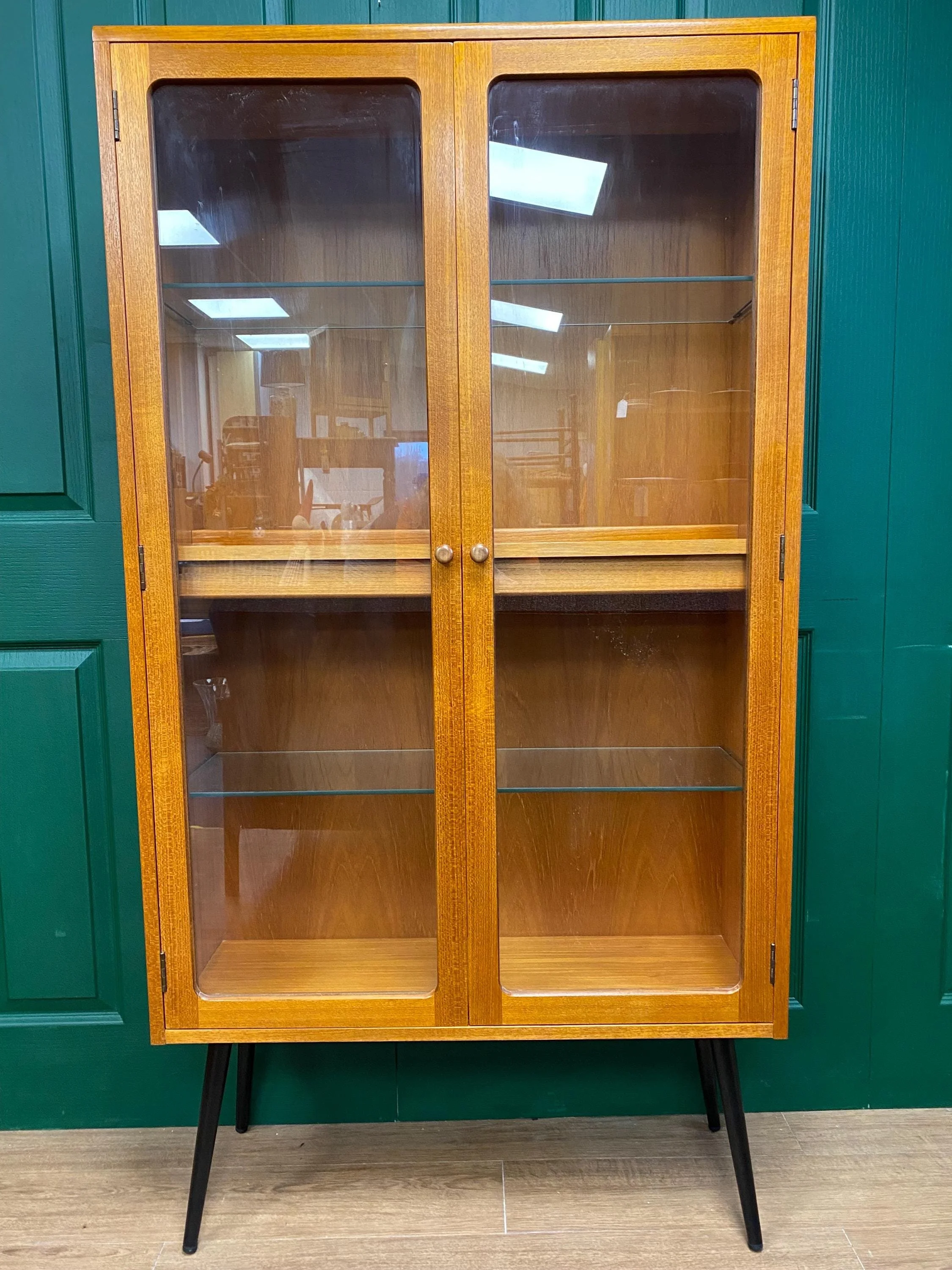 Restored Restyled Mid-Century 1960s Teak G Plan Glazed Single Wall Unit on tapered legs