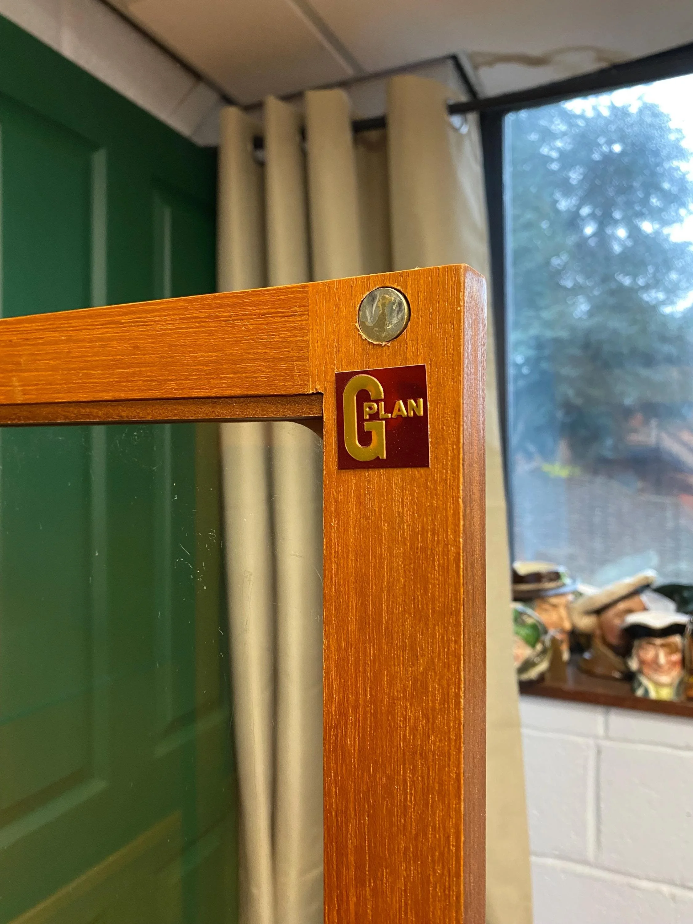 Restored and restyled G Plan Fresco teak glazed display cabinet. Beautifully crafted in rich, warm teak, this iconic piece showcases the elegant design and craftsmanship that made G-Plan a hallmark of British modern furniture with a modern twist.