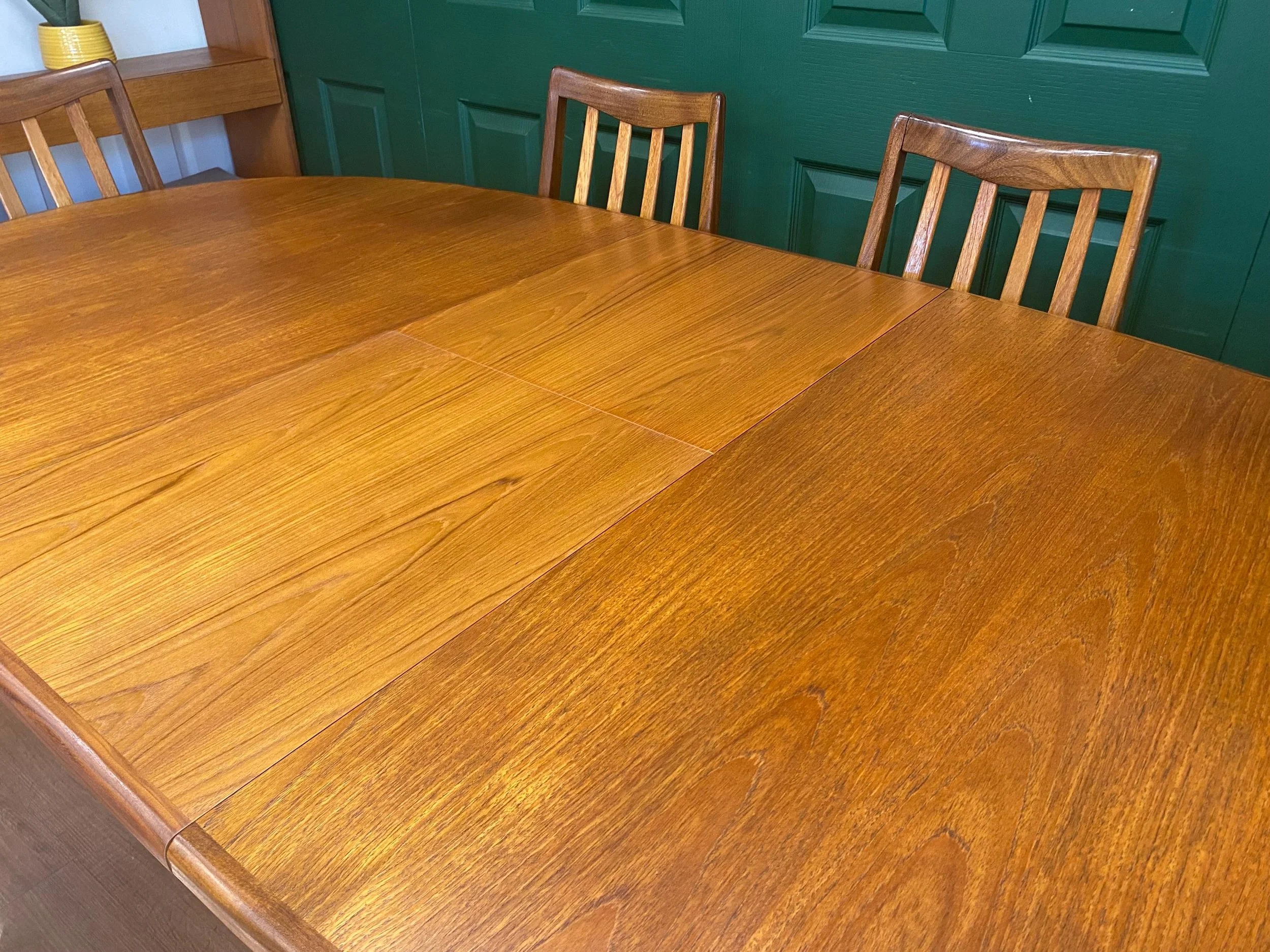 Solid teak oval dining table and six chairs by G Plan