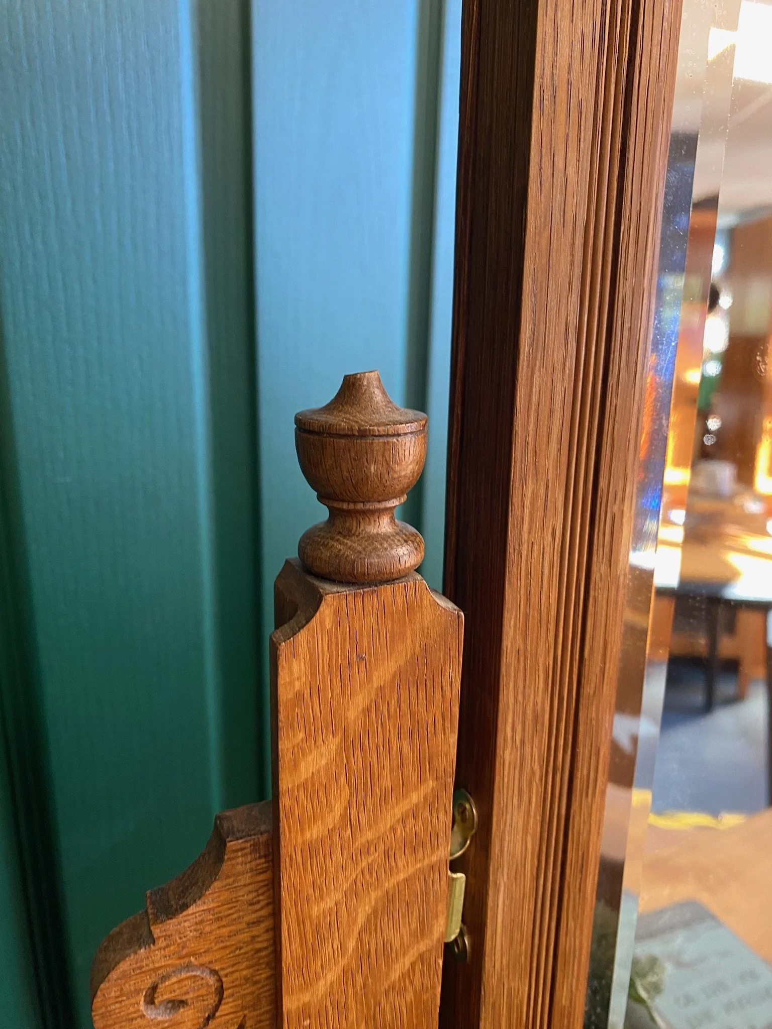 Refurbished antique Edwardian oak glazed display cabinet bookcase