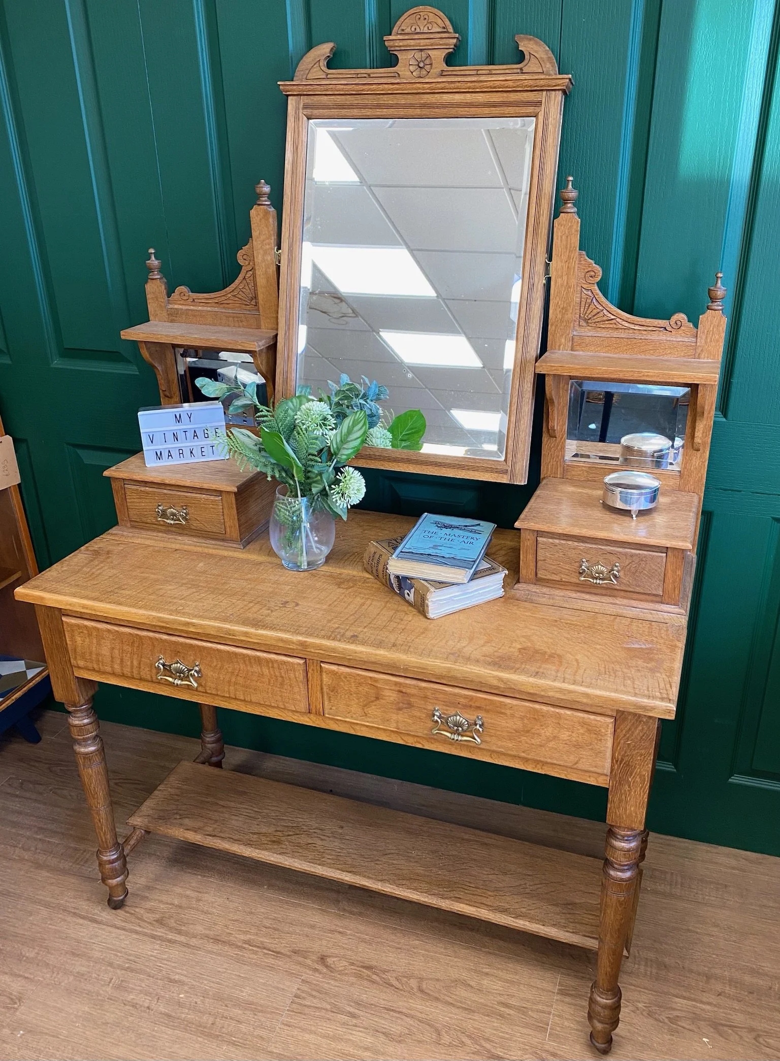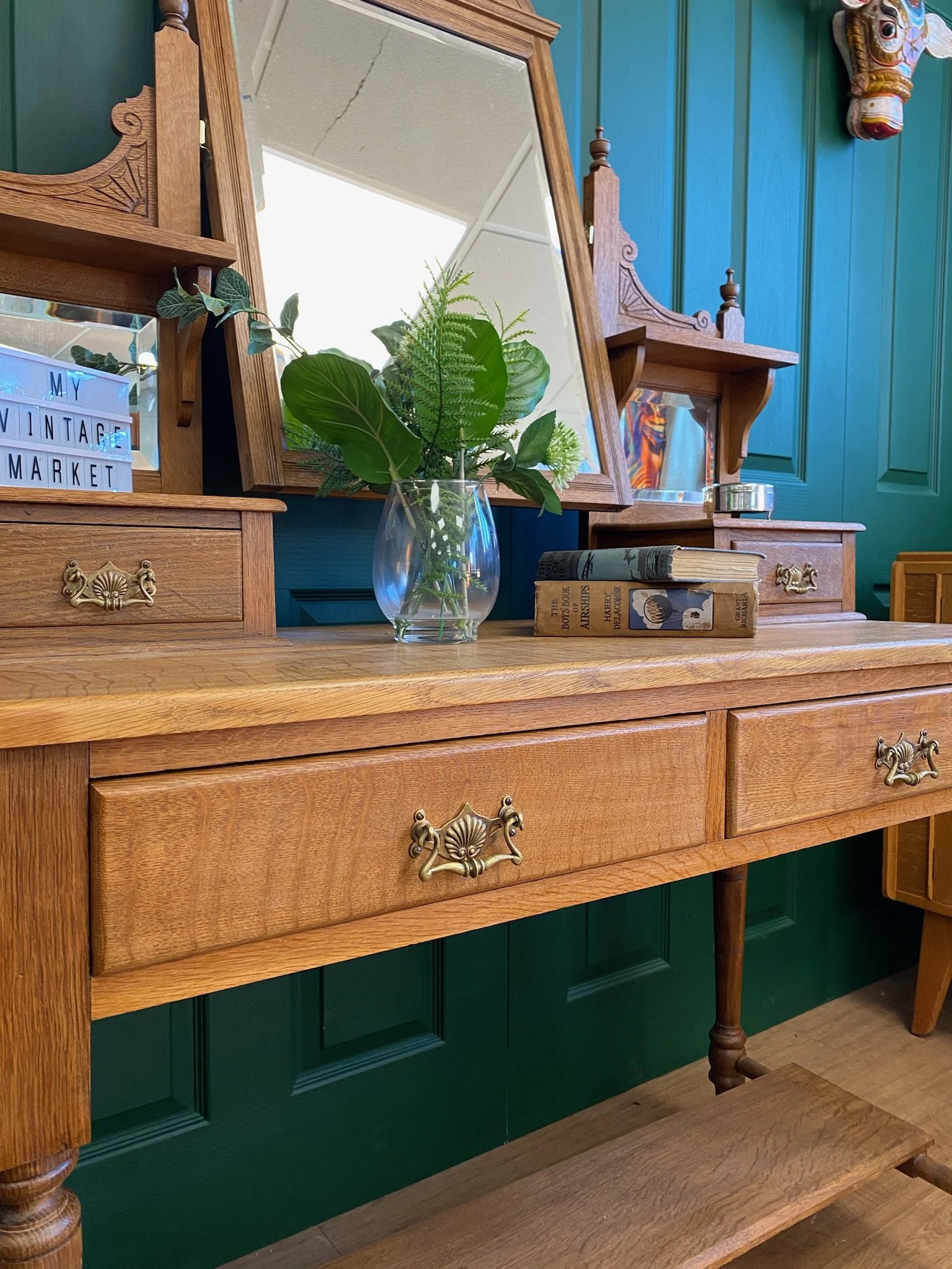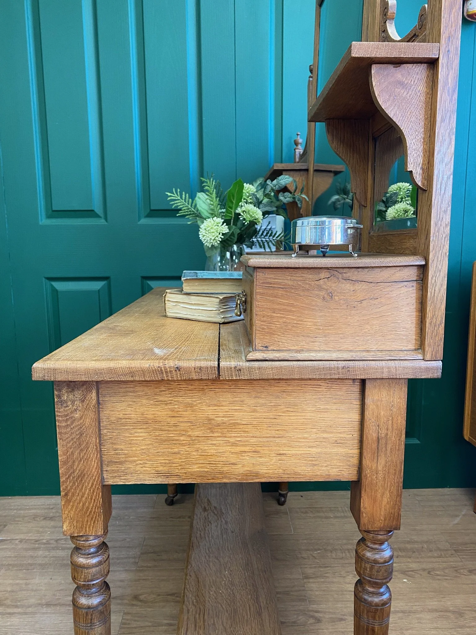 The wood has been sanded back, white washed, waxed and polished to lighten the natural oak and enhance the grain
