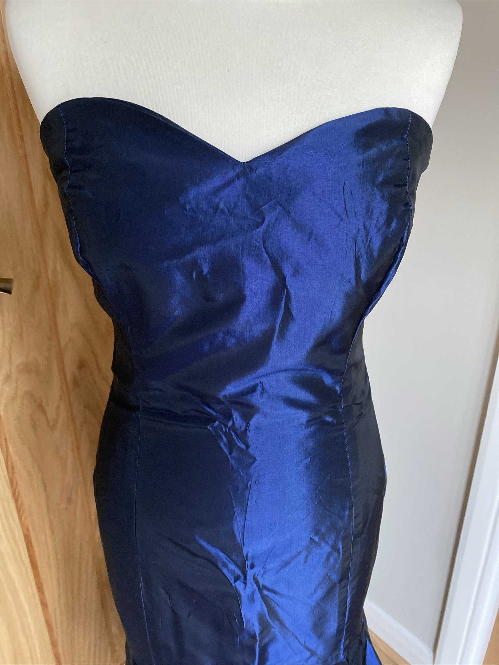 Vintage Original 1980s Navy Taffeta Ball Gown, Size 10