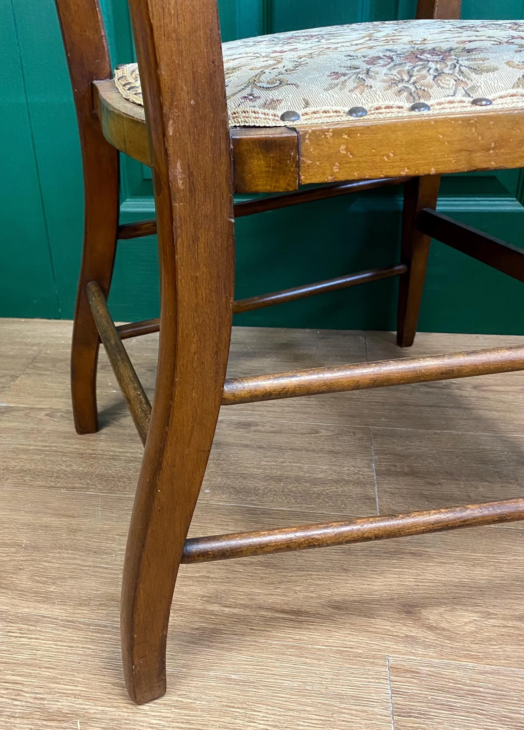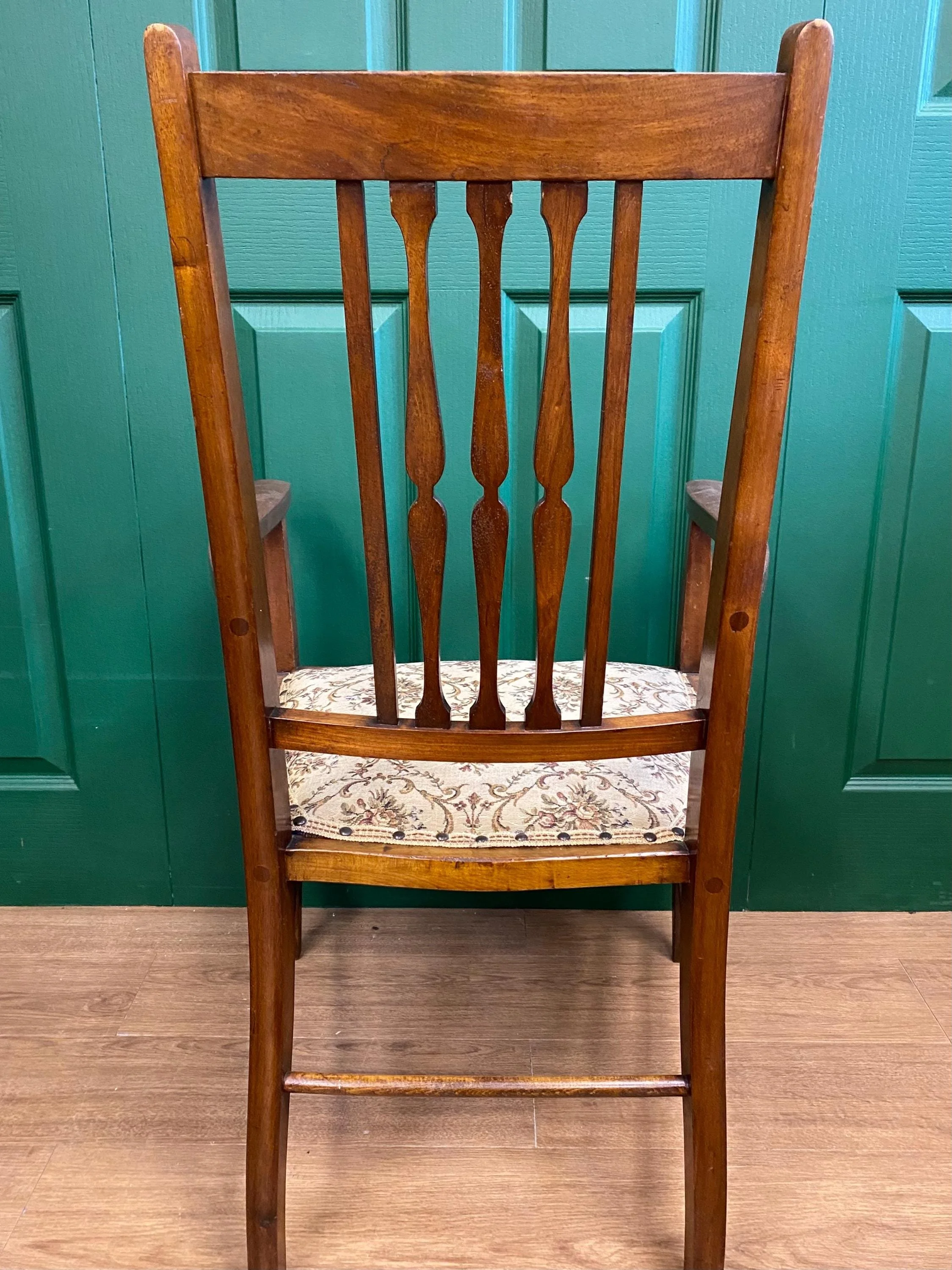 Store 1 › Antique Edwardian inlaid mahogany carver chair Image 1 of 9 Image 2 of 9 Image 3 of 9 Image 4 of 9 Image 5 of 9 Image 6 of 9 Image 7 of 9 Image 8 of 9 Image 9 of 9 Antique Edwardian inlaid mahogany carver chair £75.00 Collection in person or by courierAntique Edwardian inlaid mahogany carver chair with tapestry style fabric seatBeautiful spindle back with inlaid detail. Elegantly curved arms and back legs and spindle stretchers.Solid mahogany frameI have two similar style chairs available please my other listingsVery good condition54 cm wide x 45 cm deep x 90 cm highSeat height 40 cm Purchase Added! Collection in person or by courierAntique Edwardian inlaid mahogany carver chair with tapestry style fabric seatBeautiful spindle back with inlaid detail. Elegantly curved arms and back legs and spindle stretchers.Solid mahogany frameI have two similar style chairs available please my other listingsVery good condition54 cm wide x 45 cm deep x 90 cm highSeat height 40 cm Reviews Reviewer Name Review Date Star Rating Description Posted on Etsy Product Show More