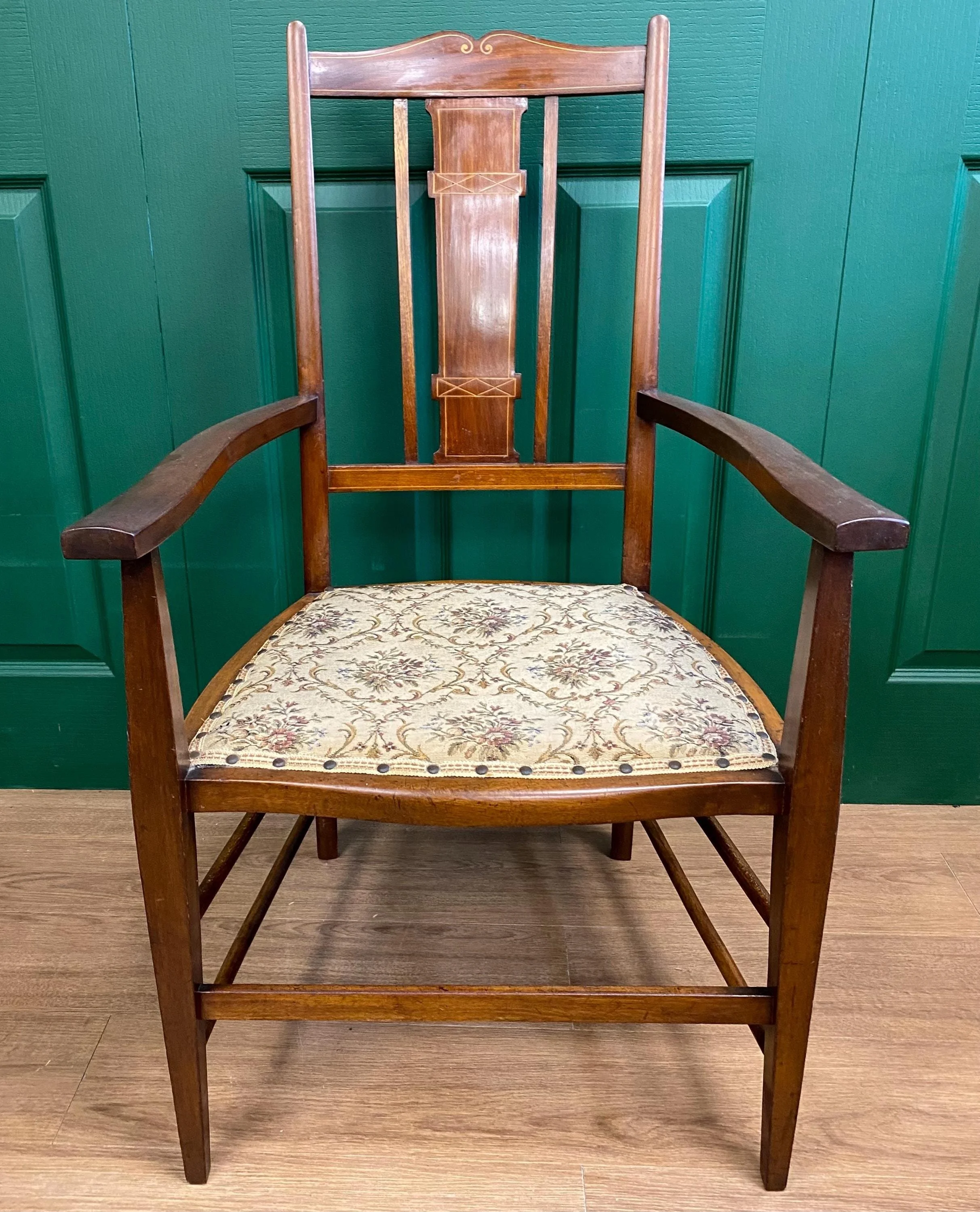 Store 1 › Antique Edwardian inlaid mahogany carver chair with tapestry style seat Image 1 of 9 Image 2 of 9 Image 3 of 9 Image 4 of 9 Image 5 of 9 Image 6 of 9 Image 7 of 9 Image 8 of 9 Image 9 of 9 Antique Edwardian inlaid mahogany carver chair with tapestry style seat £75.00 DELIVERY NOT INCLUDED. Collection in person or by courier from My Vintage Market, Hertfordshire Buyer pays for courier collection Antique Edwardian inlaid mahogany carver chair with tapestry style fabric seatBeautiful shaped back with inlaid detail. Elegantly curved arms and back legs and spindle stretchers.Solid mahogany frameI have two similar style chairs available please my other listingsVery good condition52 cm wide x 47 cm Deep x 91 cm highSeat height 40 cm Purchase Added! DELIVERY NOT INCLUDED. Collection in person or by courier from My Vintage Market, Hertfordshire Buyer pays for courier collection Antique Edwardian inlaid mahogany carver chair with tapestry style fabric seatBeautiful shaped back with inlaid detail. Elegantly curved arms and back legs and spindle stretchers.Solid mahogany frameI have two similar style chairs available please my other listingsVery good condition52 cm wide x 47 cm Deep x 91 cm highSeat height 40 cm Reviews Reviewer Name Review Date Star Rating Description Posted on Etsy Product Show More