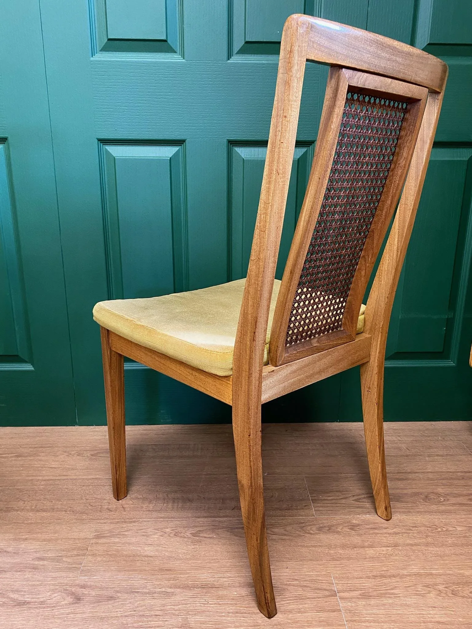 Pair of mid century teak G Plan Fresco dining chairs basket weave cane backs