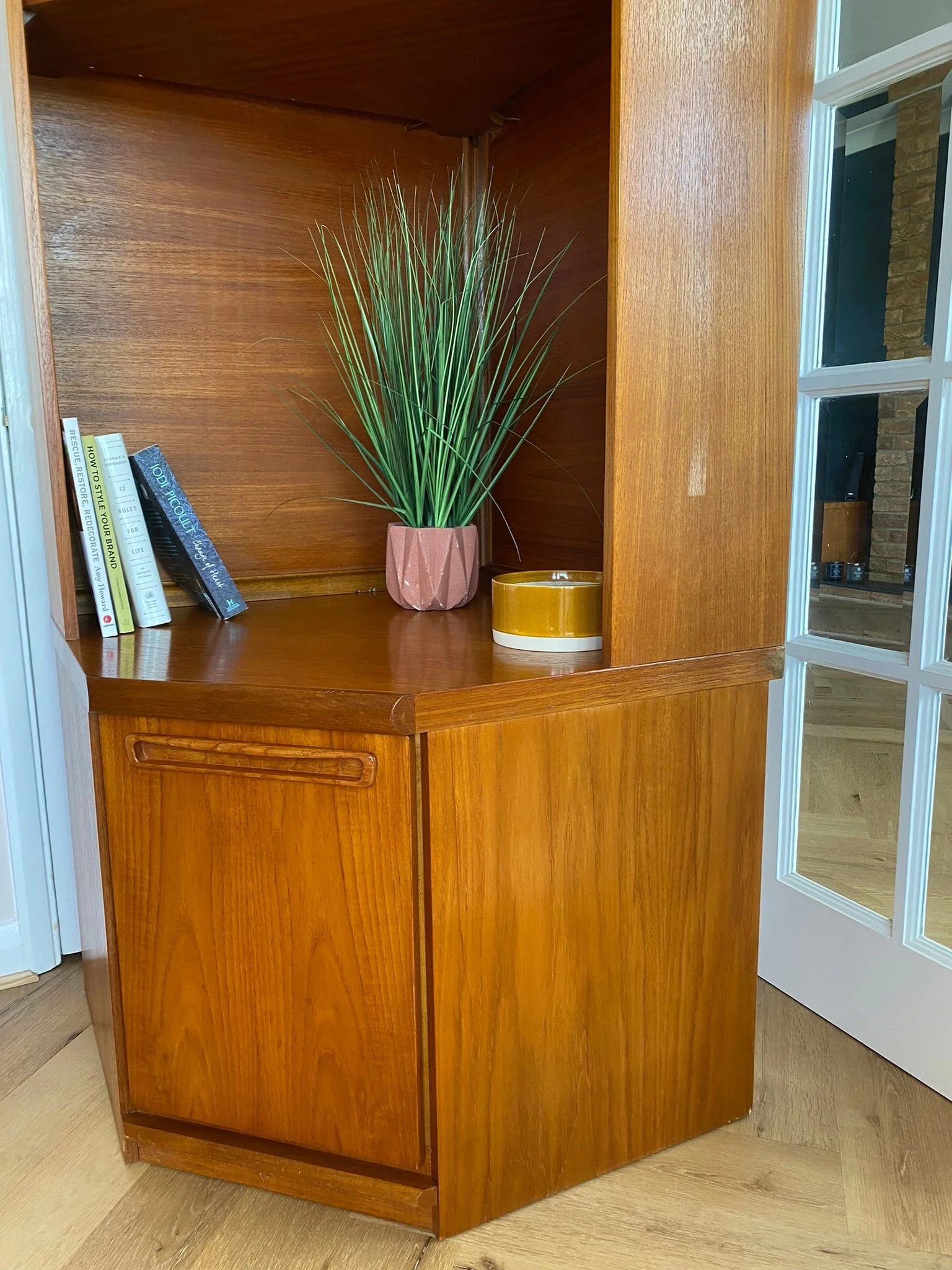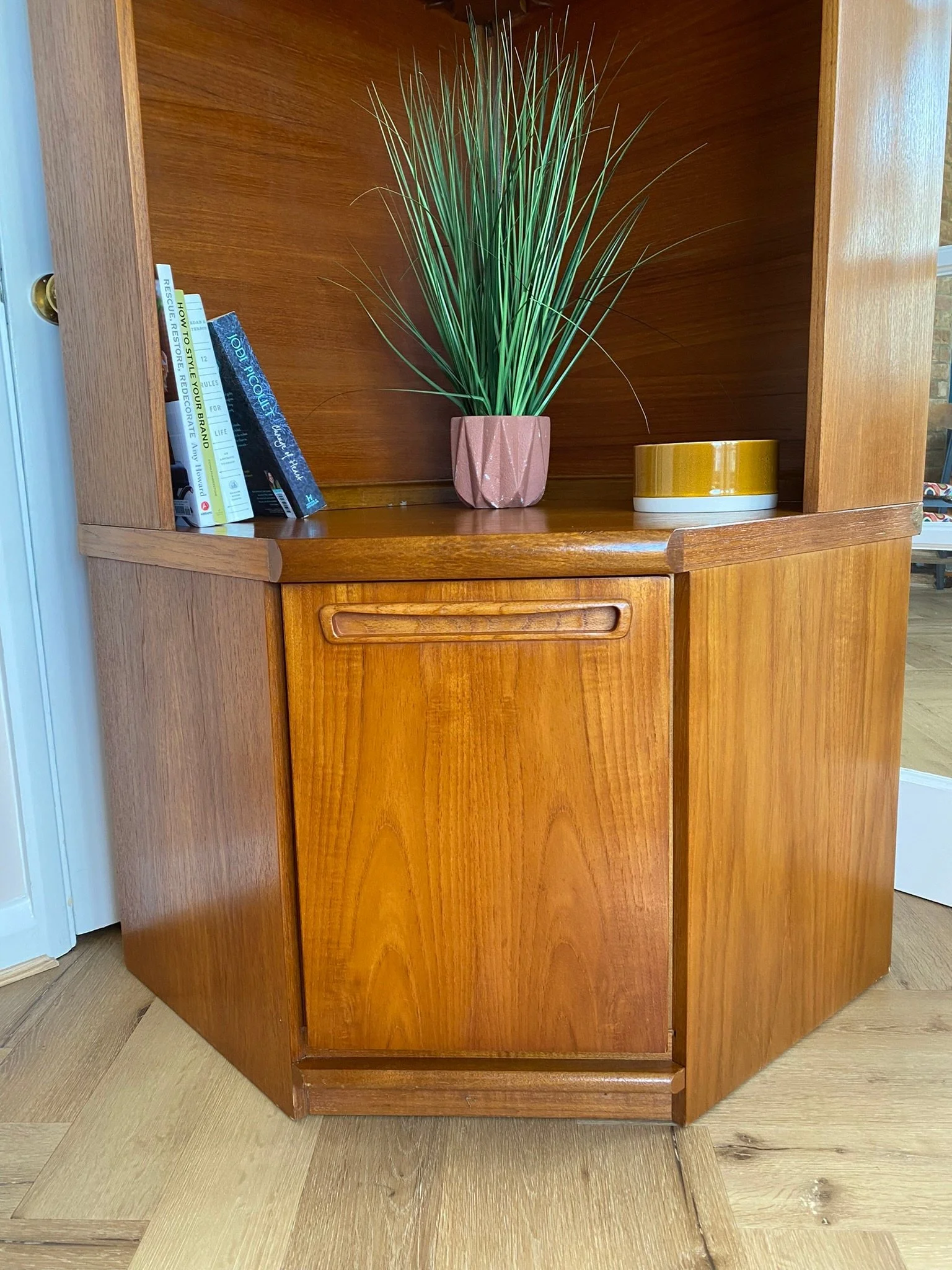 Vintage mid century teak corner wall unit bookcase cupboard cabinet