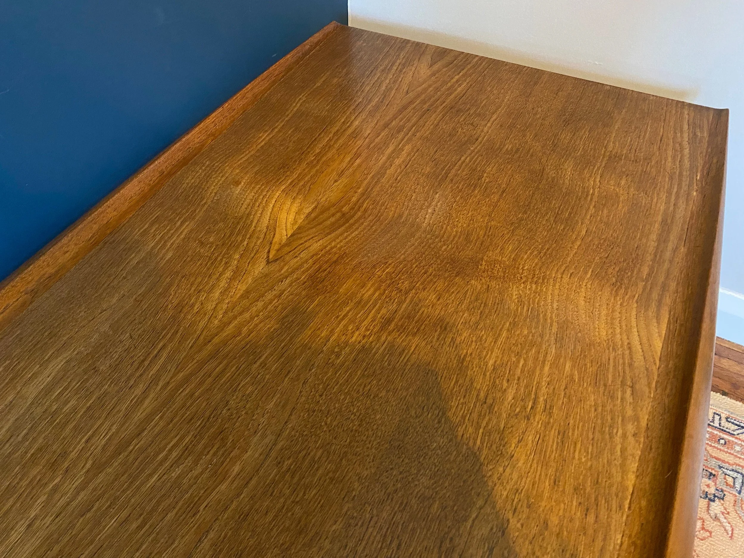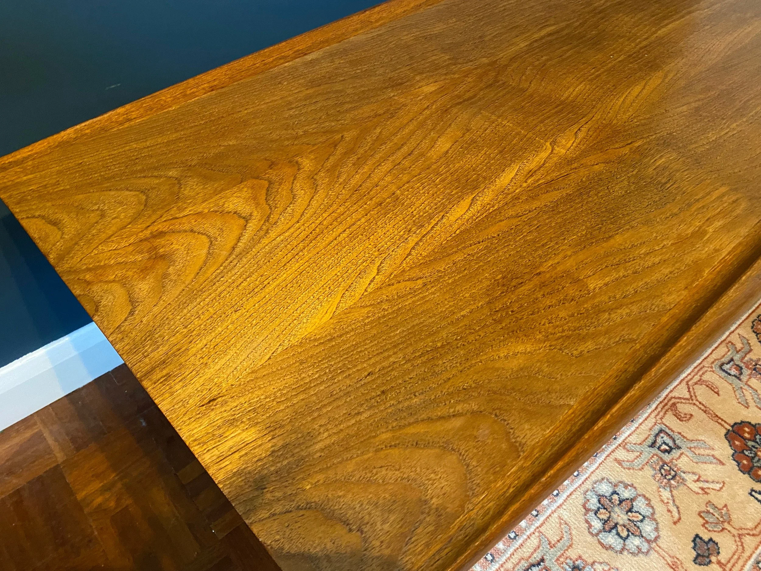 A couple of small marks on the top, see photos. Has been oiled and polished. There is a historical repair on one of the legs, see photos. Still in good condition.