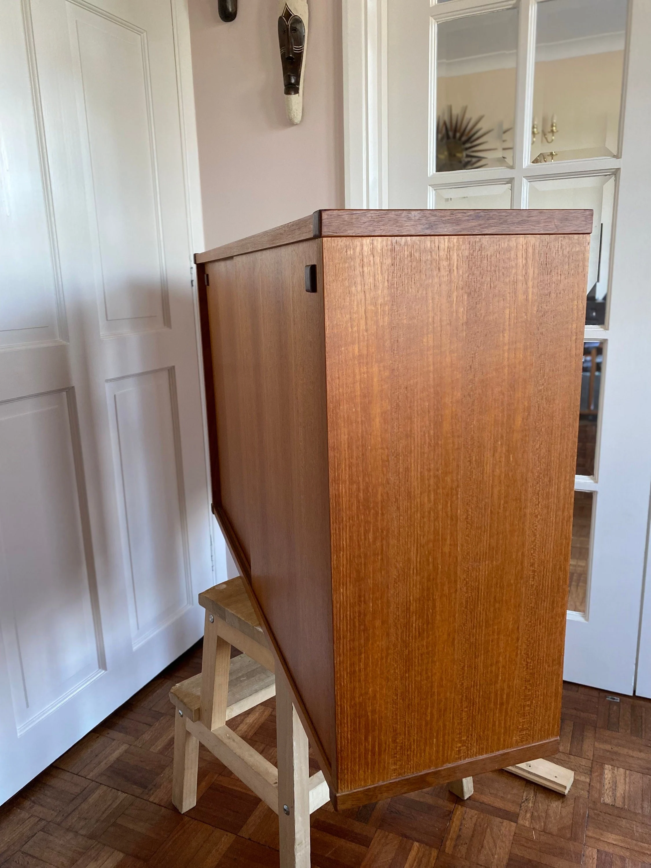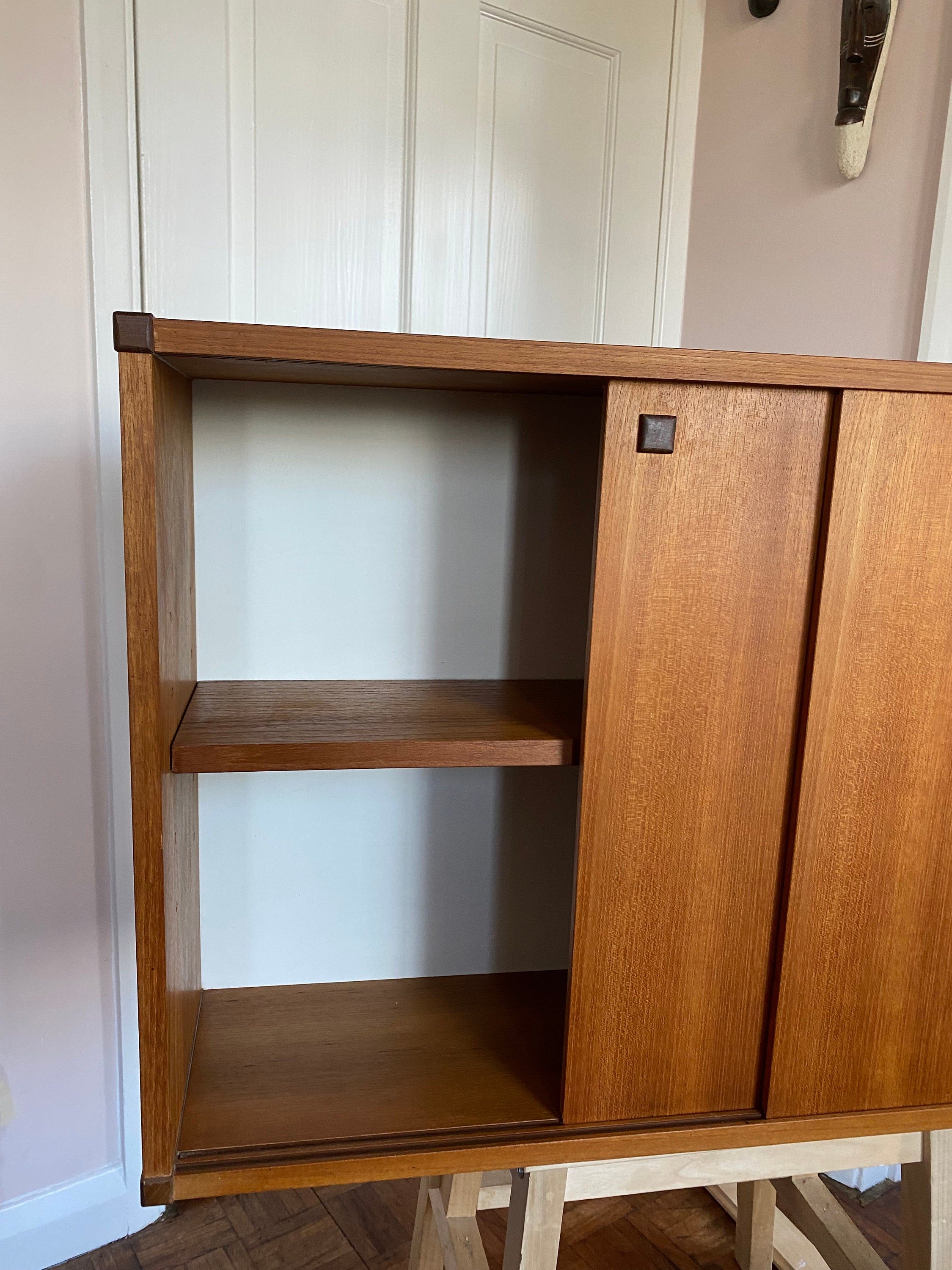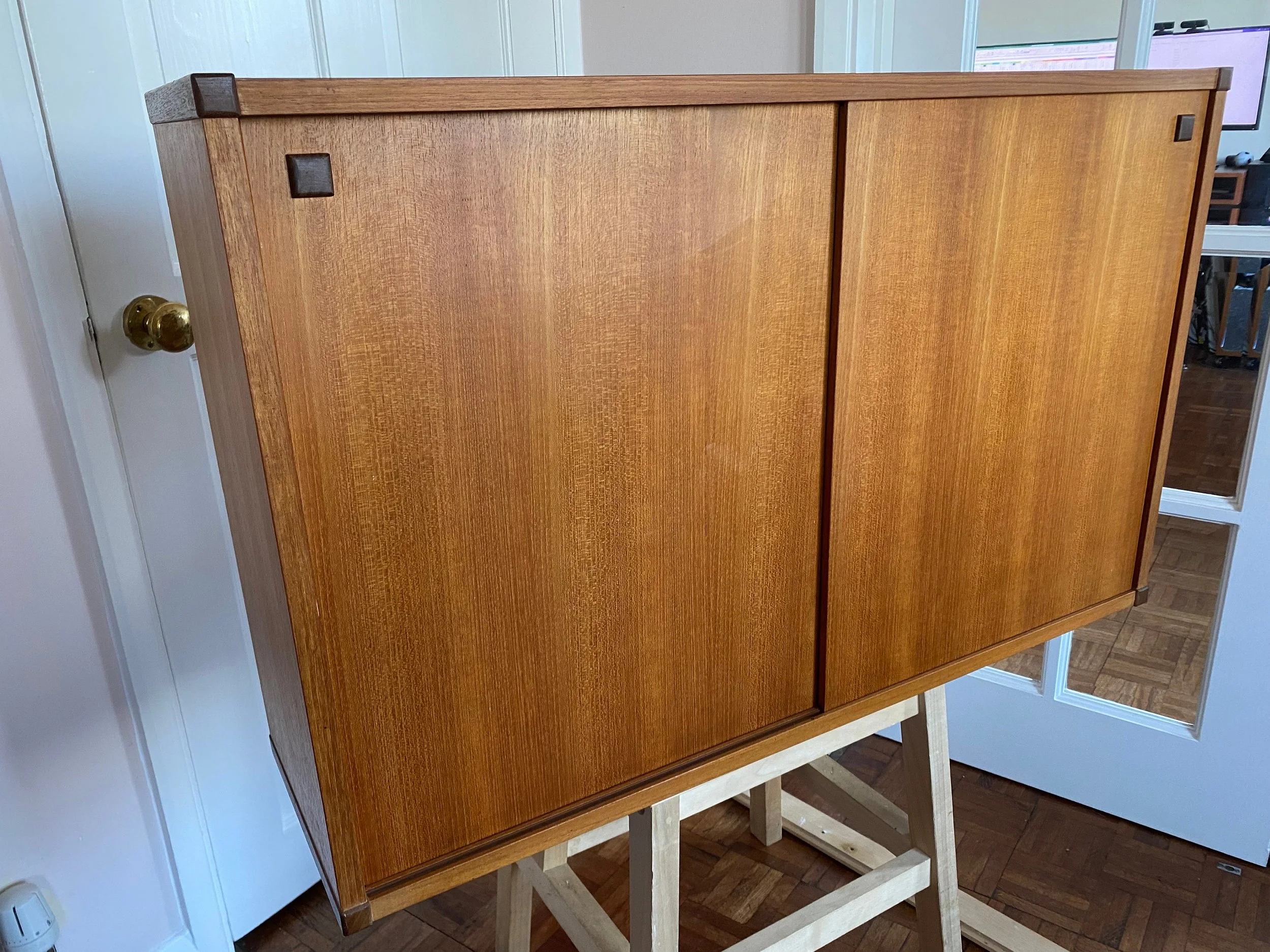 1960s mid century teak Beaver and Tapley SL modular wall furniture sliding door floating cabinet