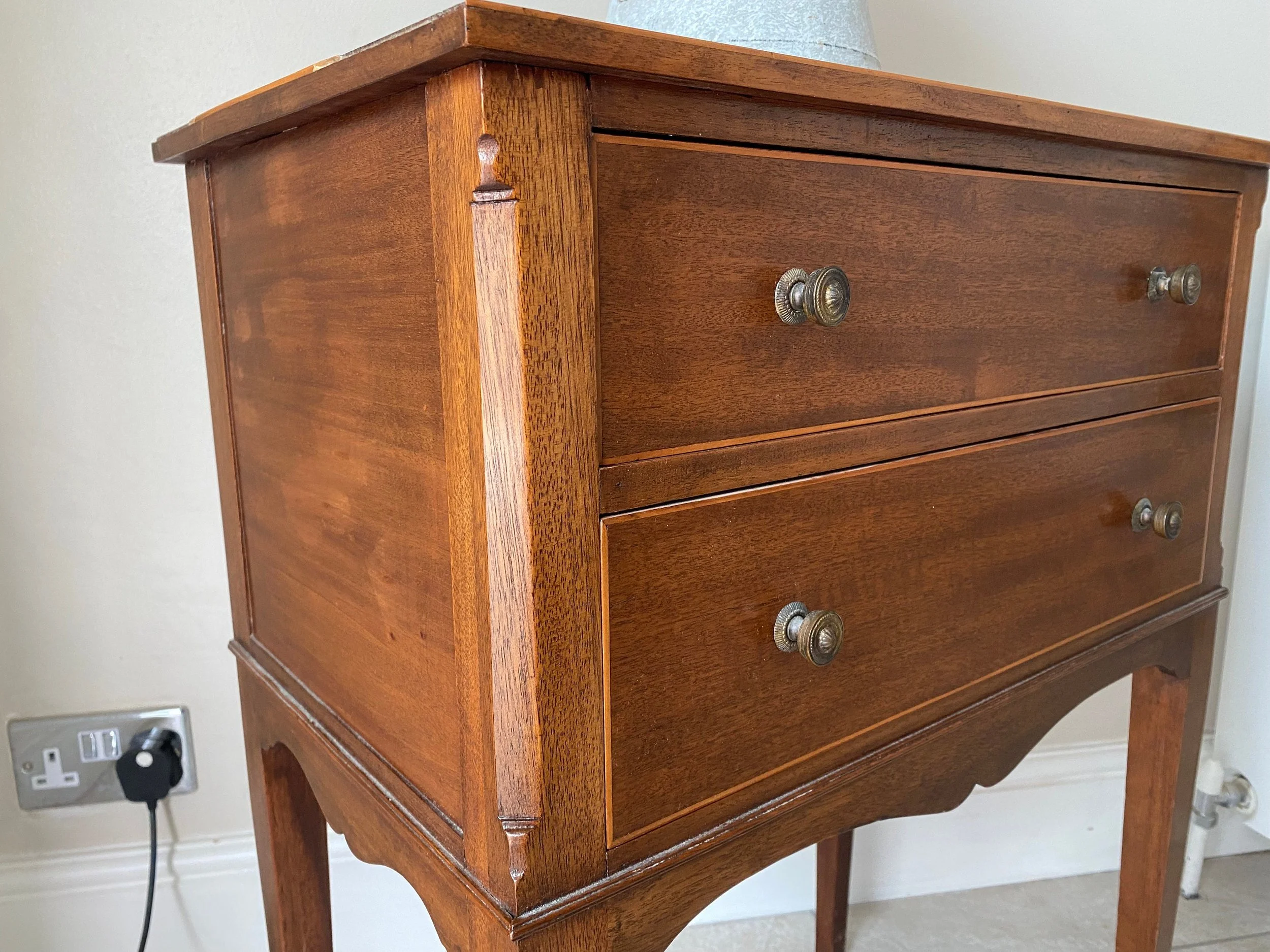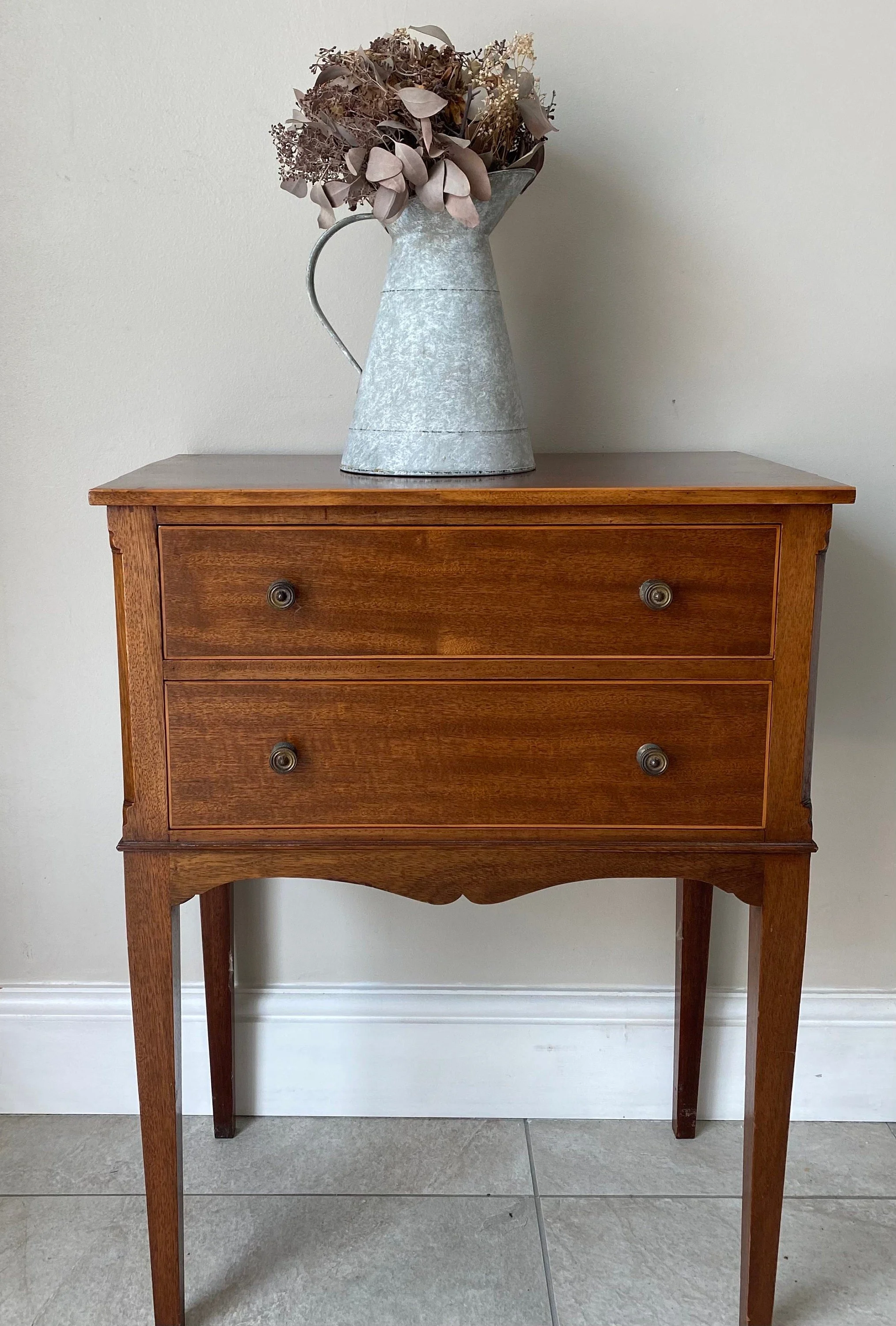 Antique Edwardian mahogany inlaid side table with two drawers