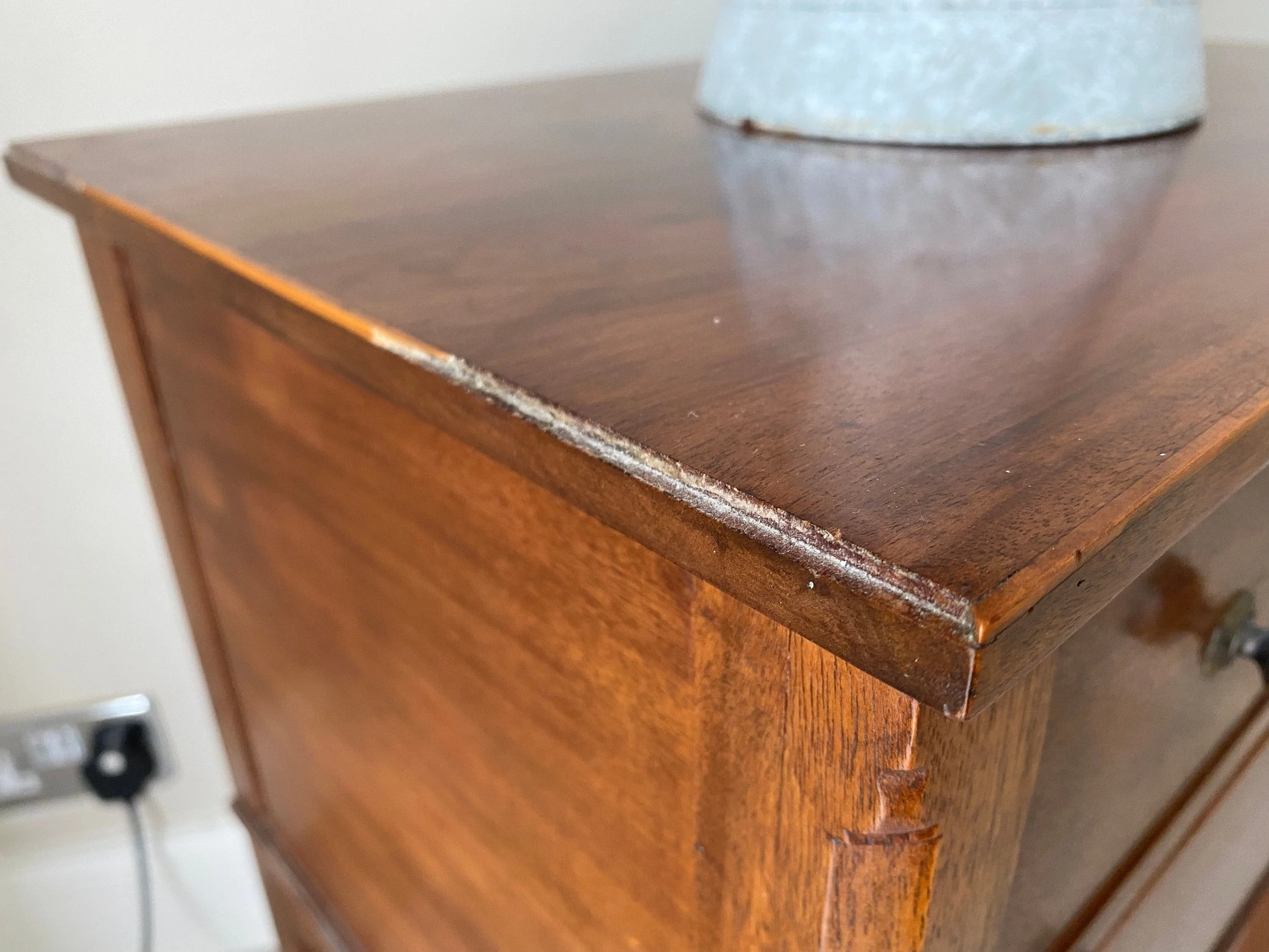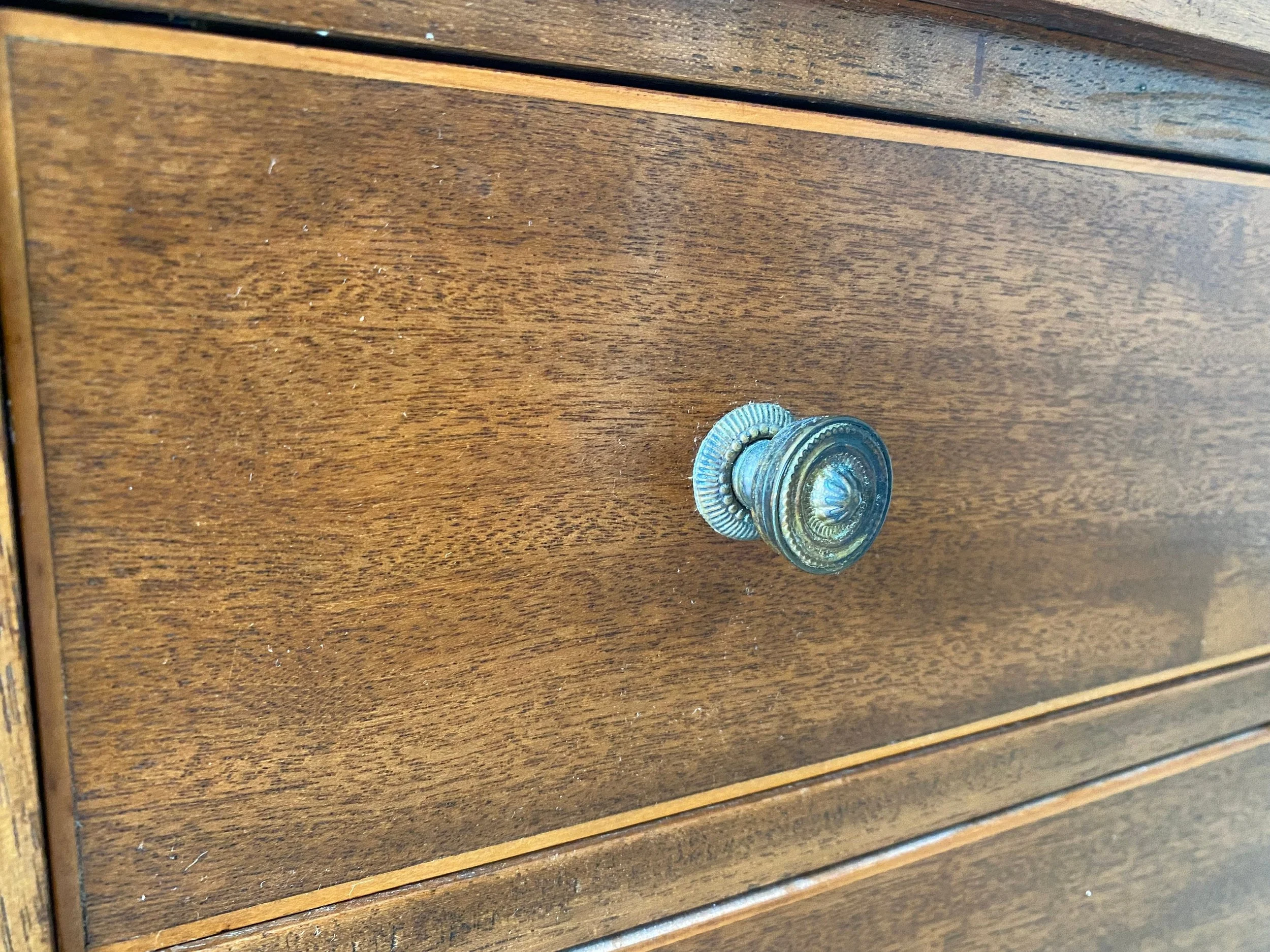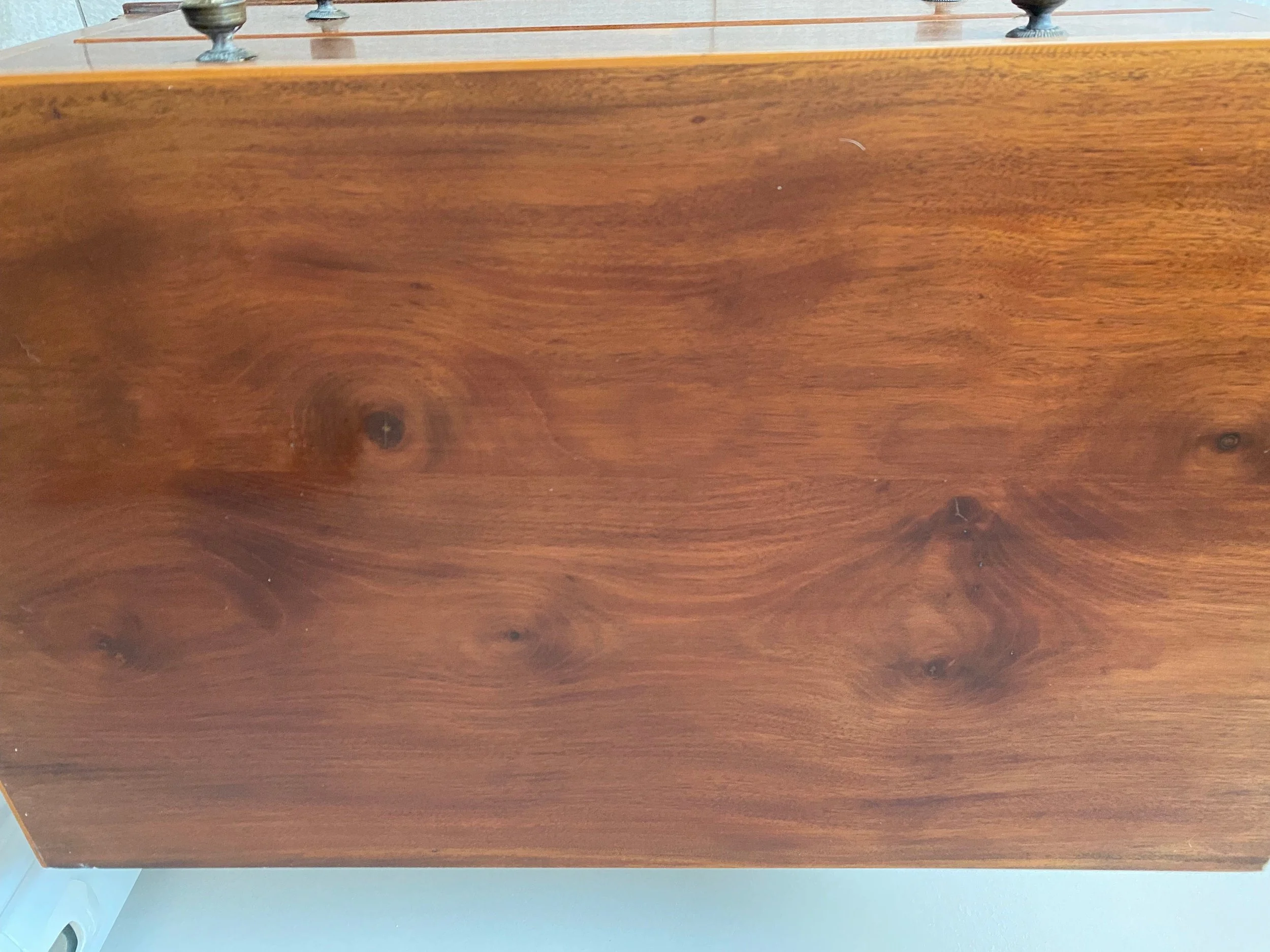 A small piece of inlay missing from either side of the top. Otherwise in very good condition