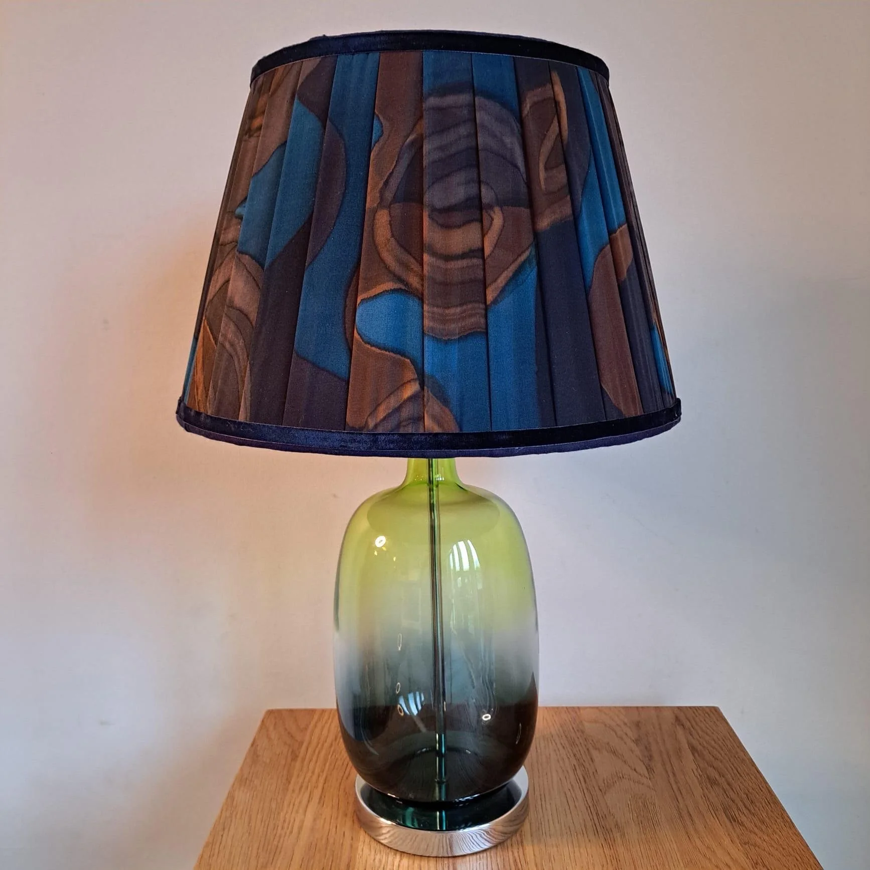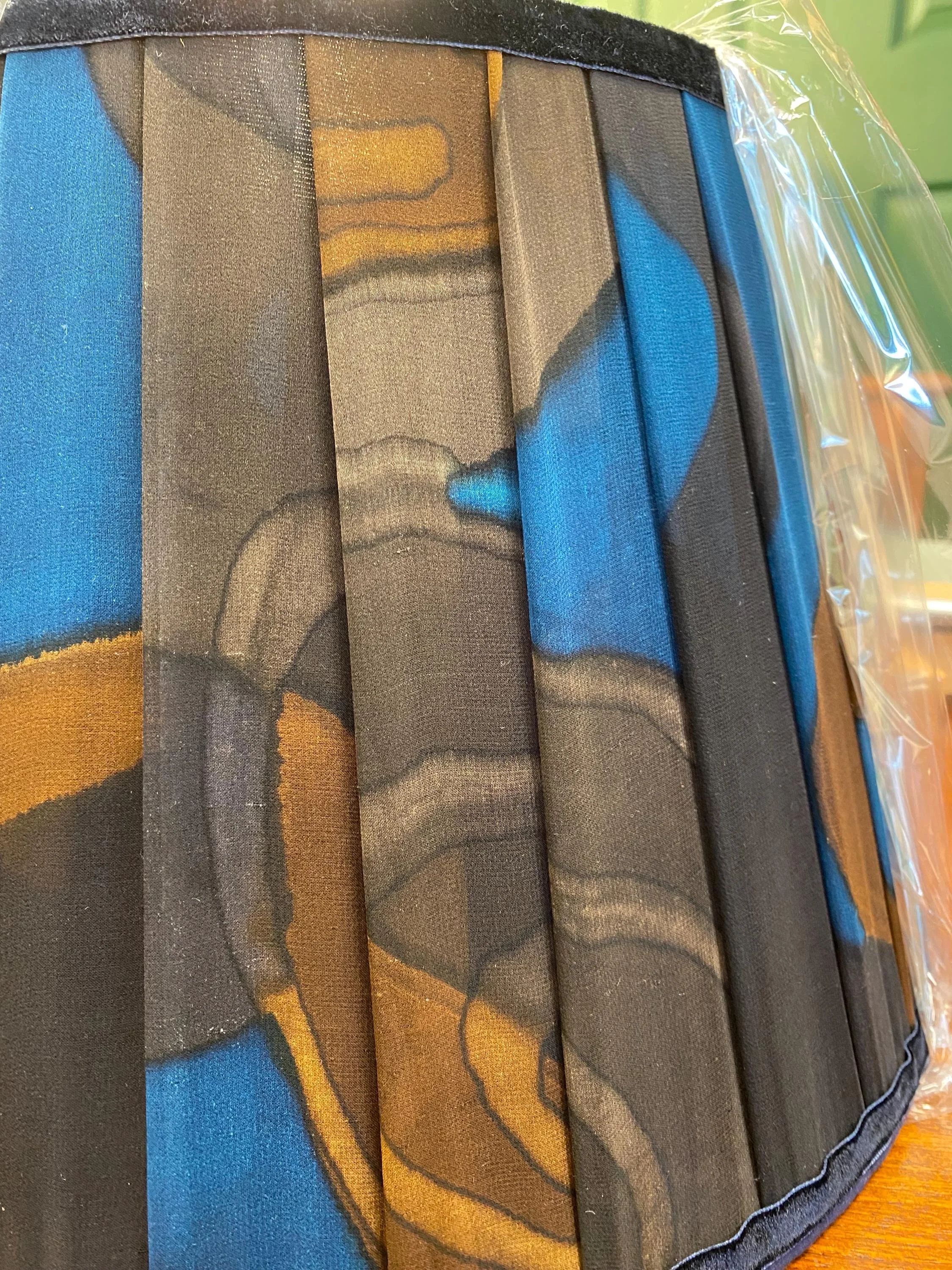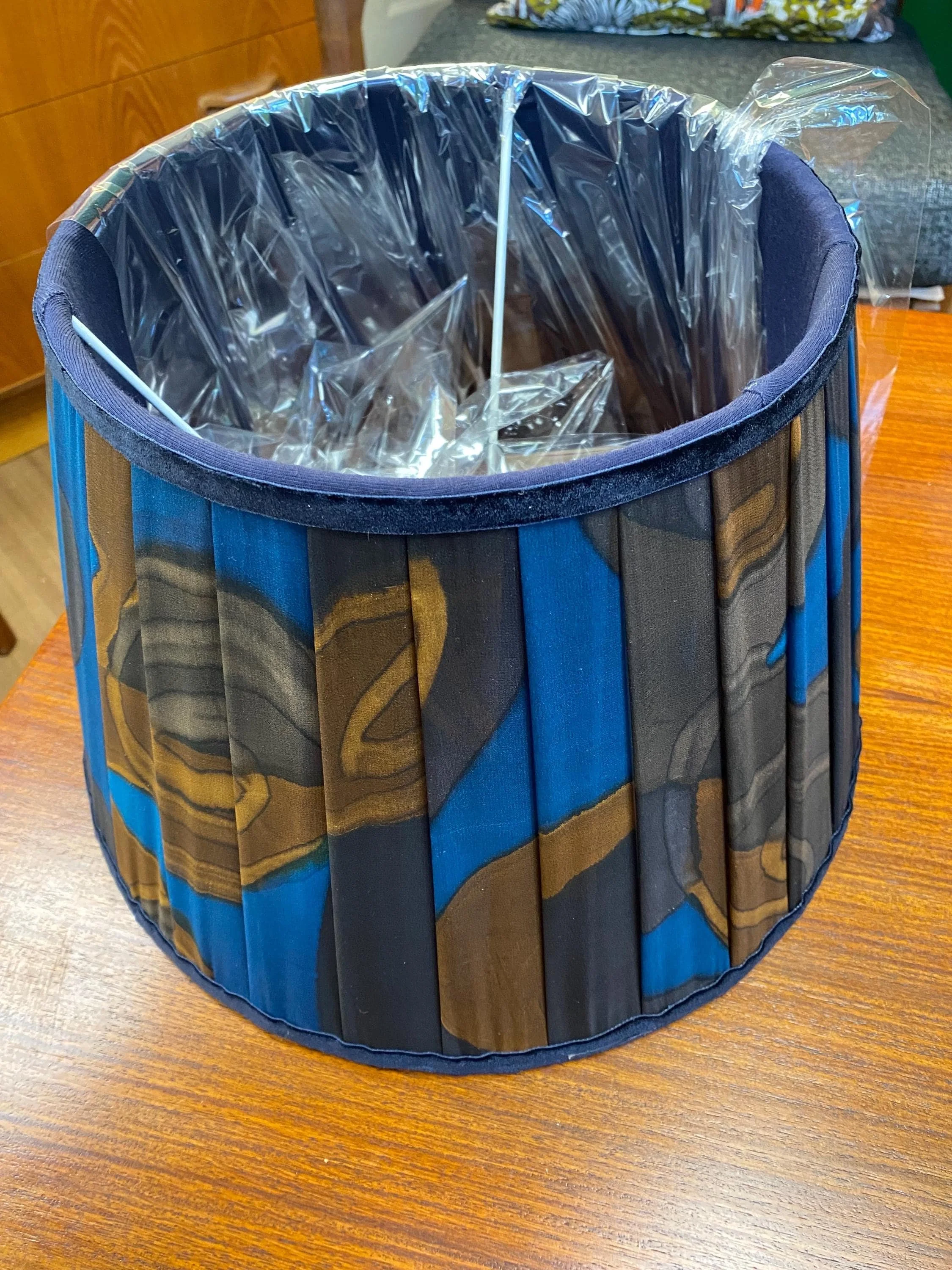 Store › Handmade vintage saree silk pleated lampshade brown blue Image 1 of 6 Image 2 of 6 Image 3 of 6 Image 4 of 6 Image 5 of 6 Image 6 of 6 Handmade vintage saree silk pleated lampshade brown blue £35.00 Hand made pleated lampshade made from vintage saree silkTeal blue with brown detail 36cm diameter at the bottom, 24cm diameter at the top24cm high I am also selling a matching cushion, please check out my other listings Purchase Added! Hand made pleated lampshade made from vintage saree silkTeal blue with brown detail 36cm diameter at the bottom, 24cm diameter at the top24cm high I am also selling a matching cushion, please check out my other listings Reviews Reviewer Name Review Date Star Rating Description Posted on Etsy Product Show More