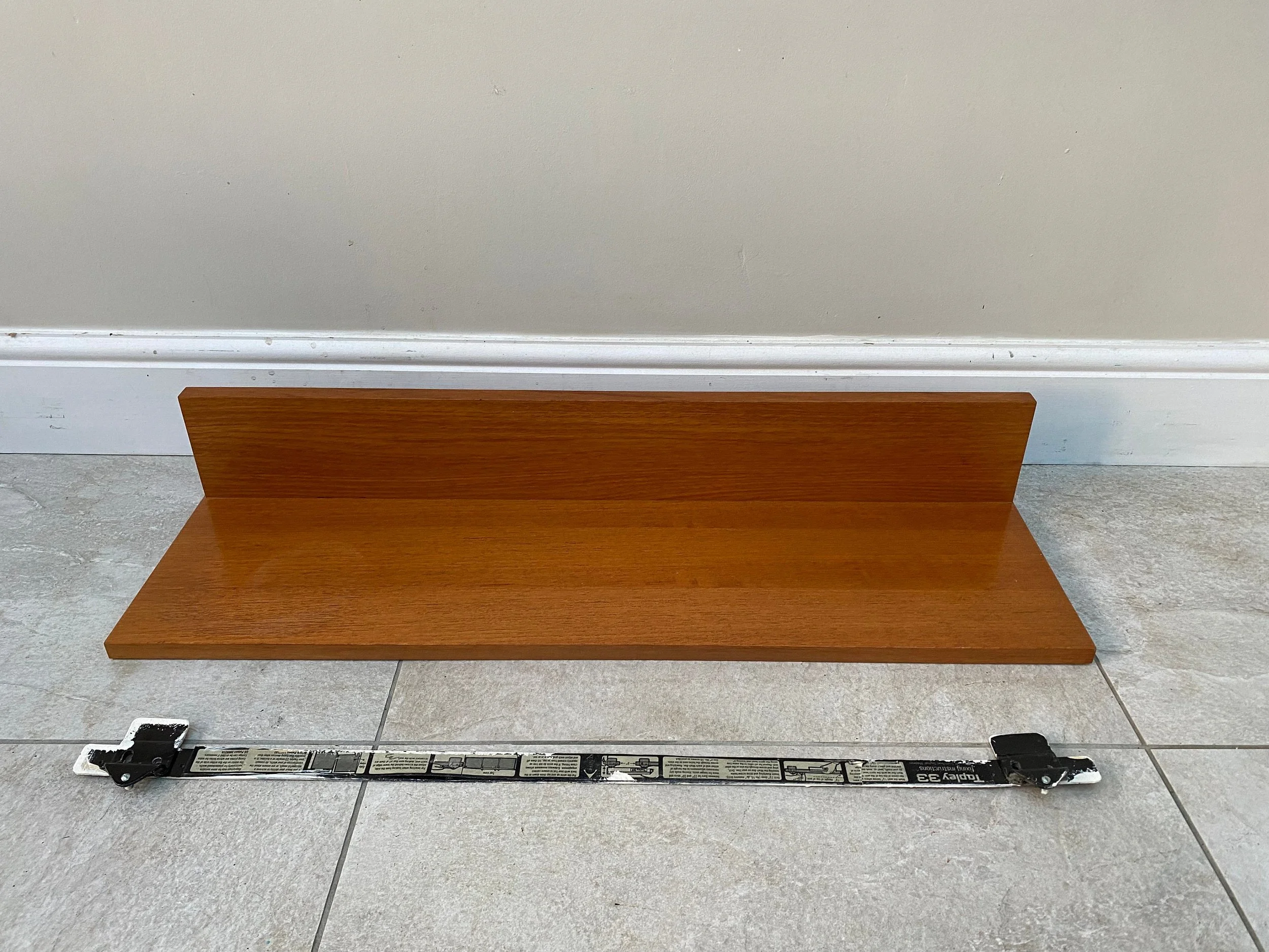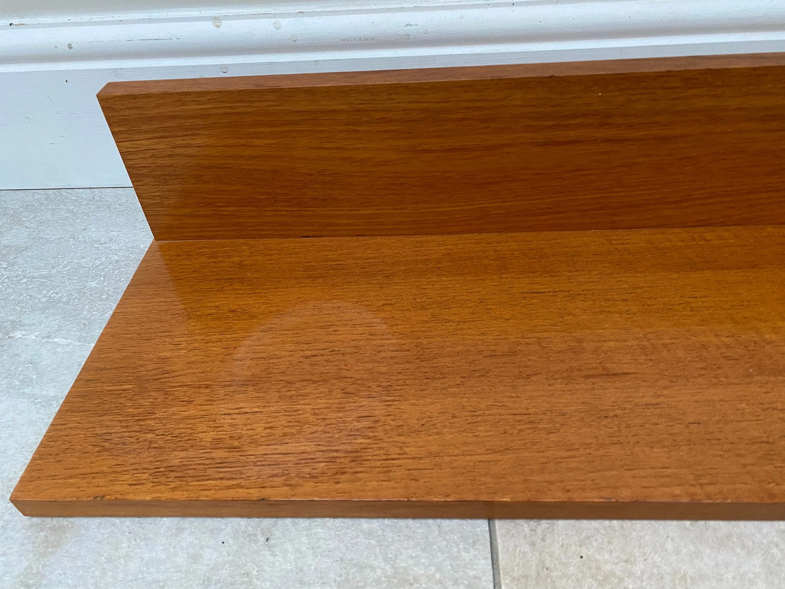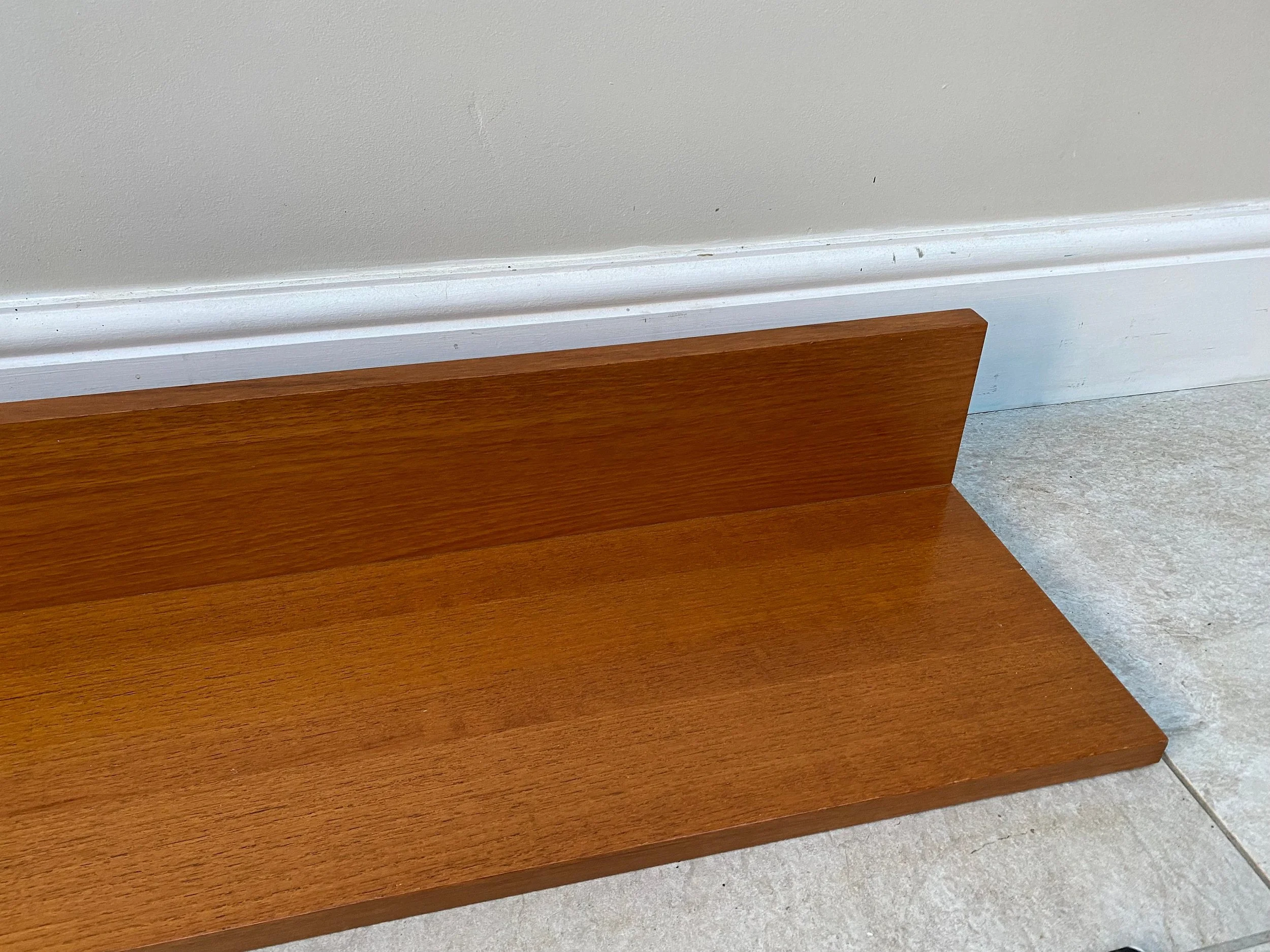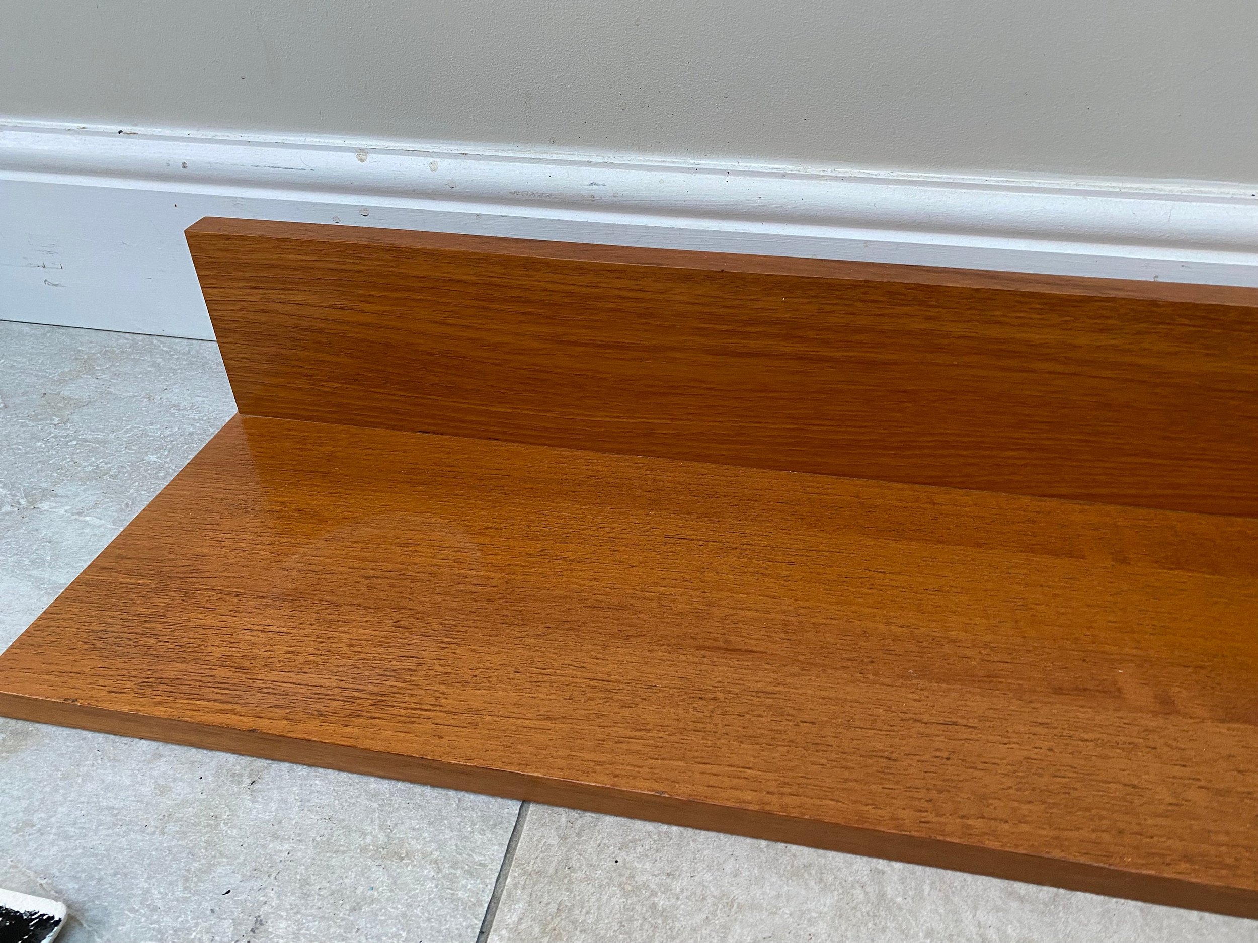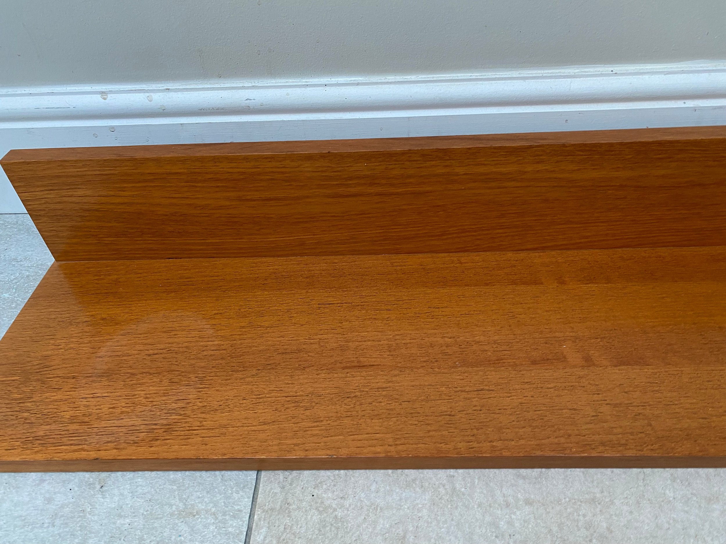 1970s teak Beaver and Tapley 33” wall shelf Model SR33 Floating shelf with fixings