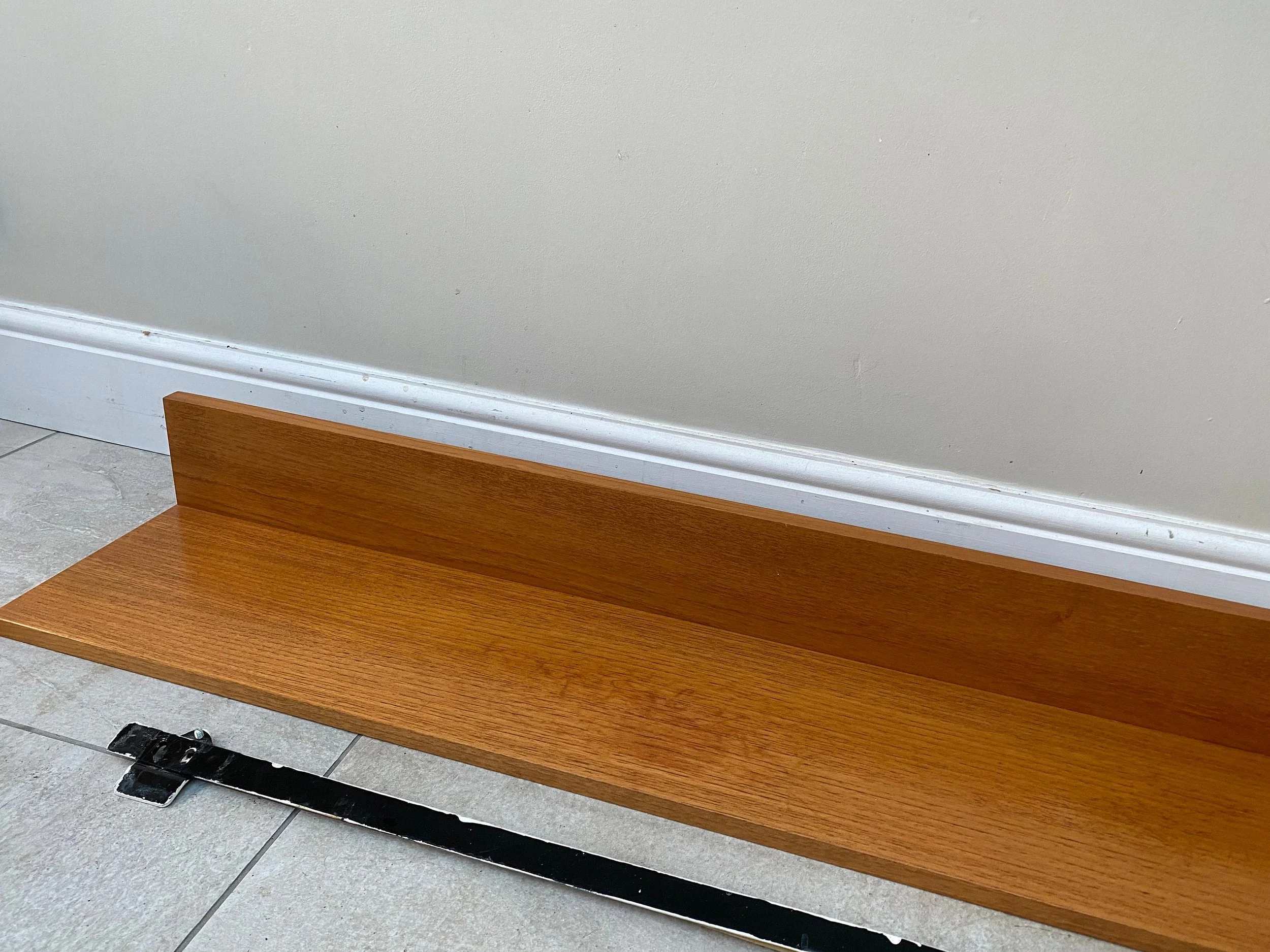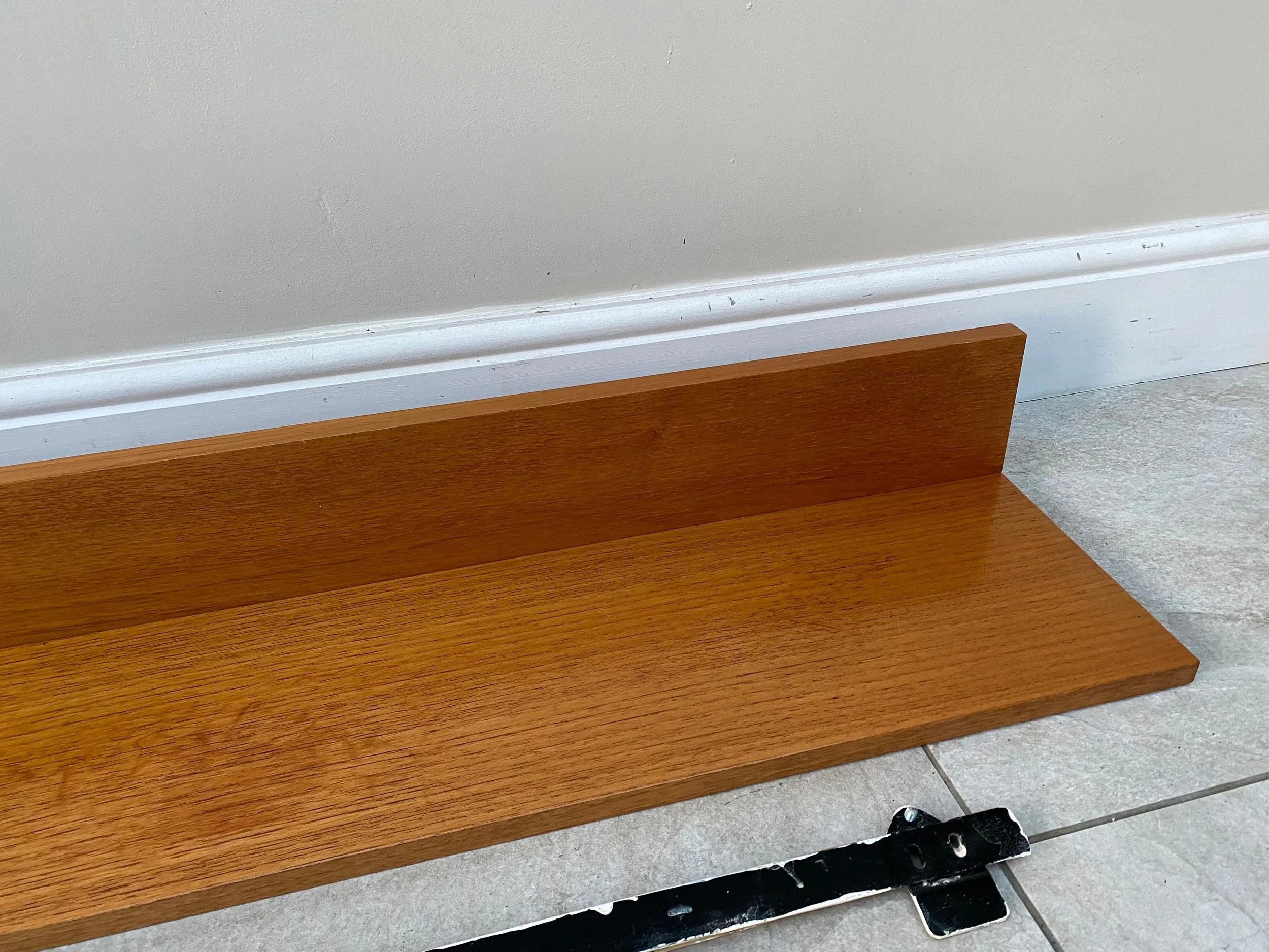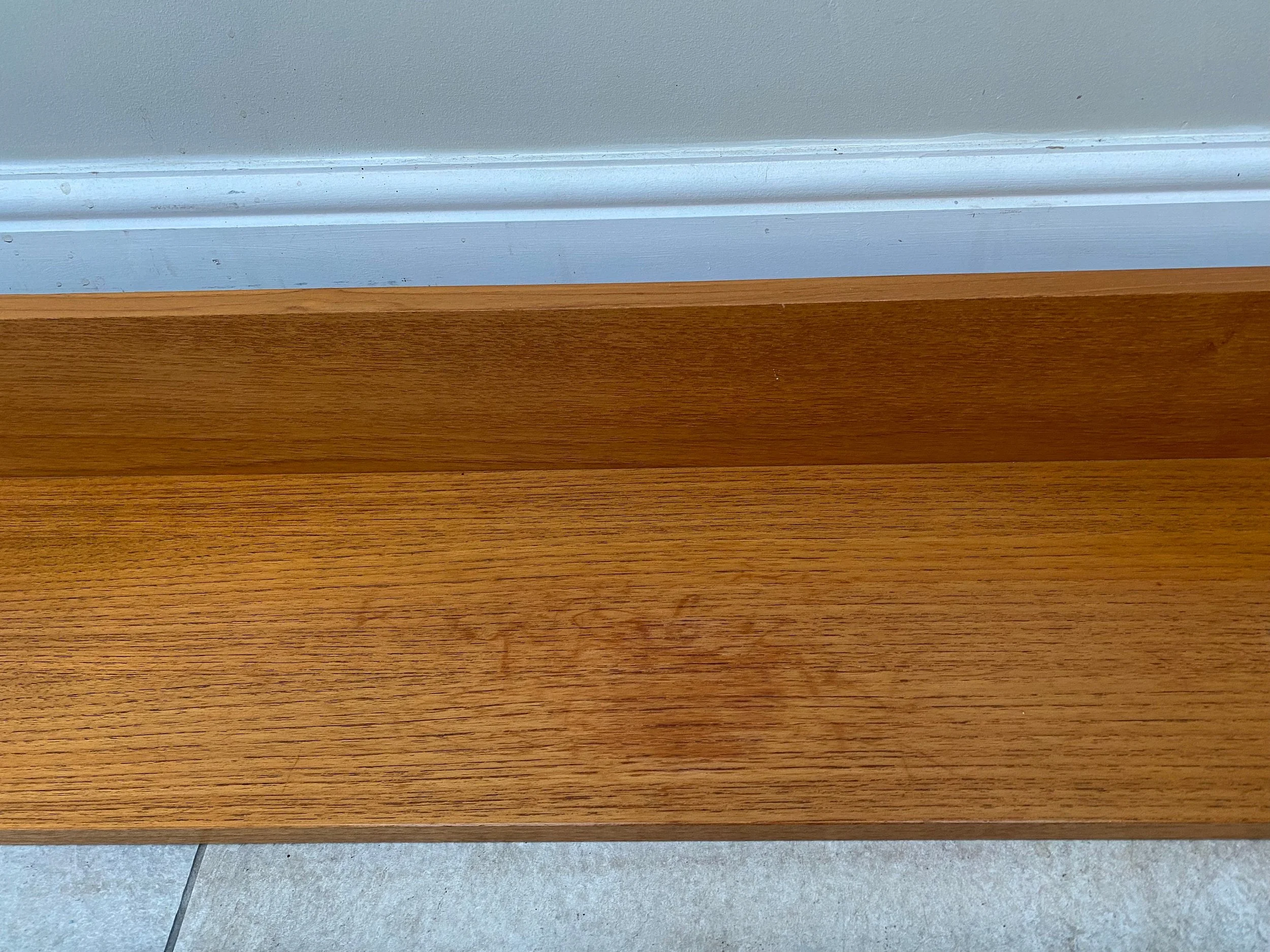 1970s teak Beaver and Tapley 44” wall shelf Model SR44 Floating wall shelf with fixings