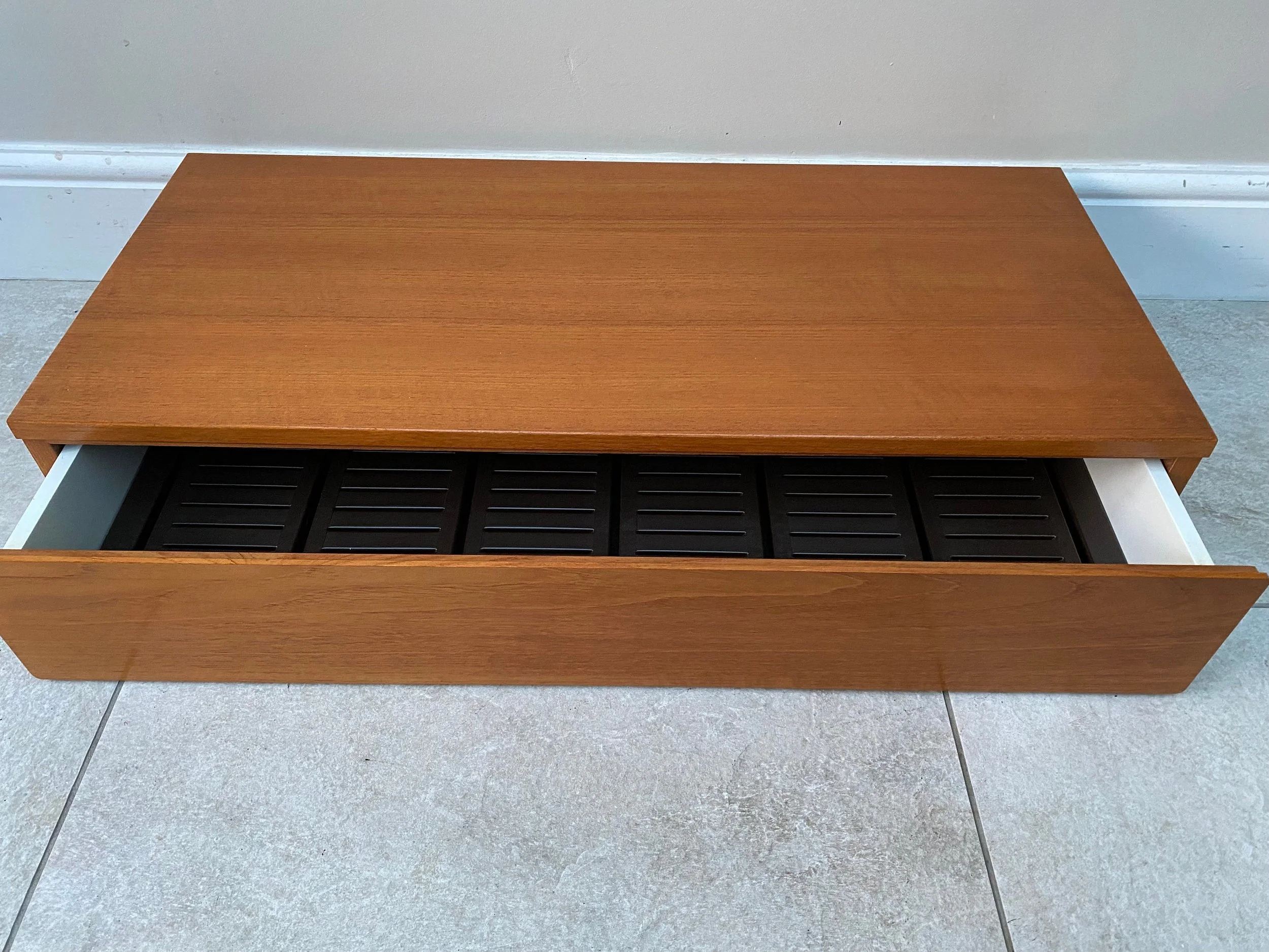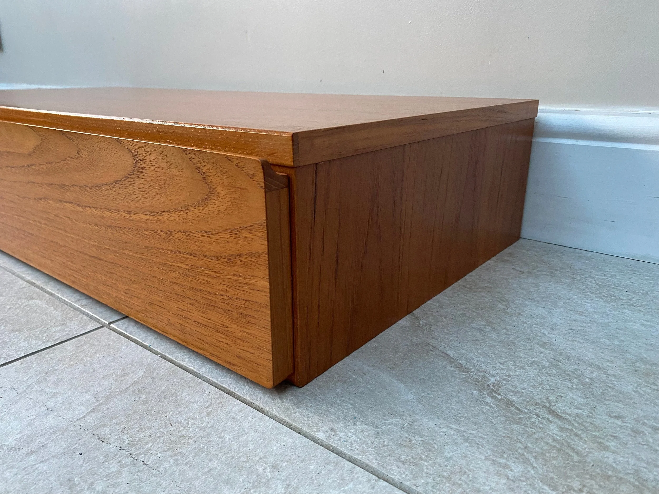 1970s teak Beaver and Tapley floating wall drawer Model SR44 Floating wall mounted single drawer unit Racking inside