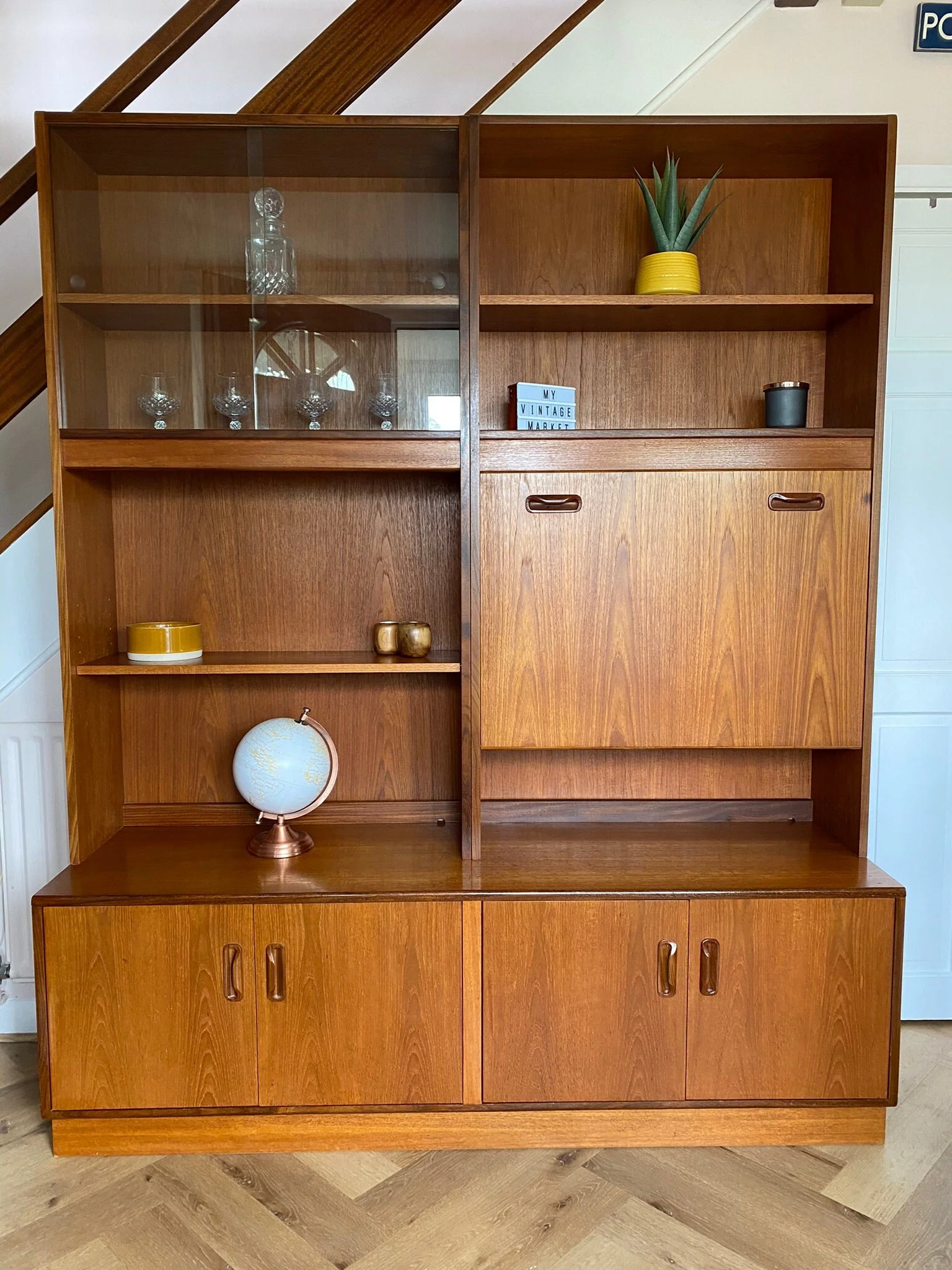 Mid century teak G Plan Fresco double wall display cocktail cabinet