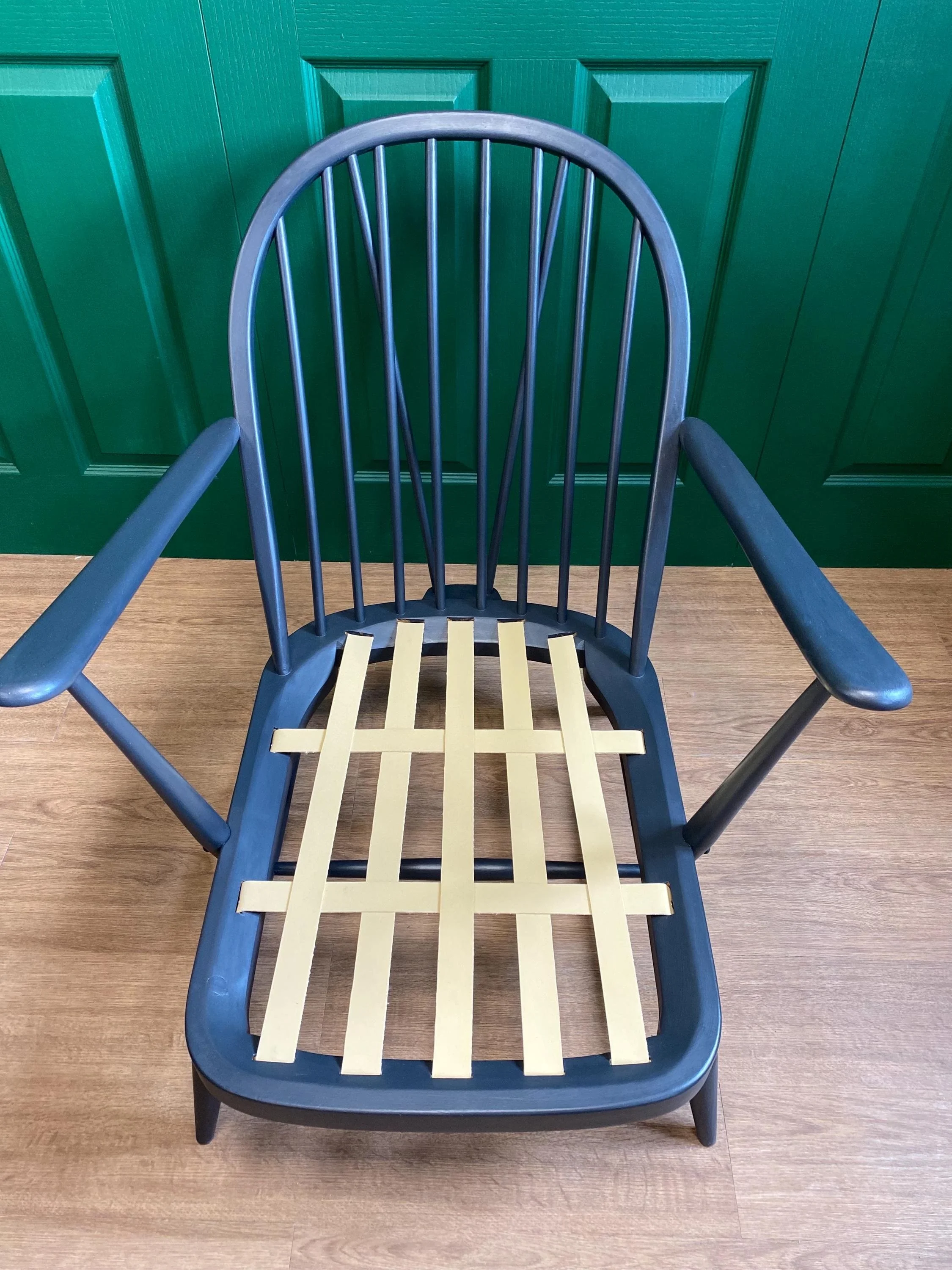 Refurbished mid century vintage Ercol Windsor armchair grey teal blue green velvet 2 of 2
