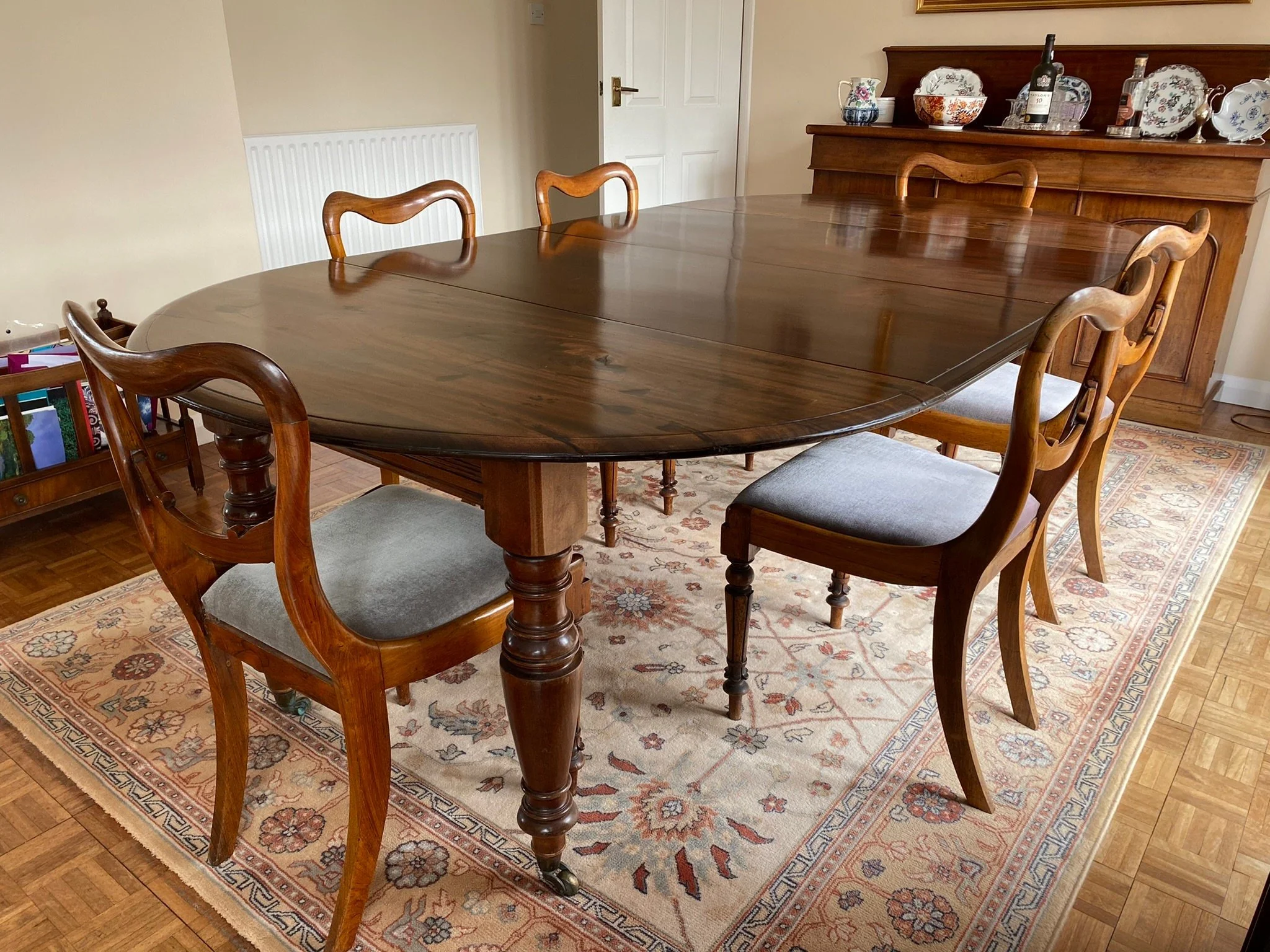 Victorian mahogany oval extending table and six rosewood chairs