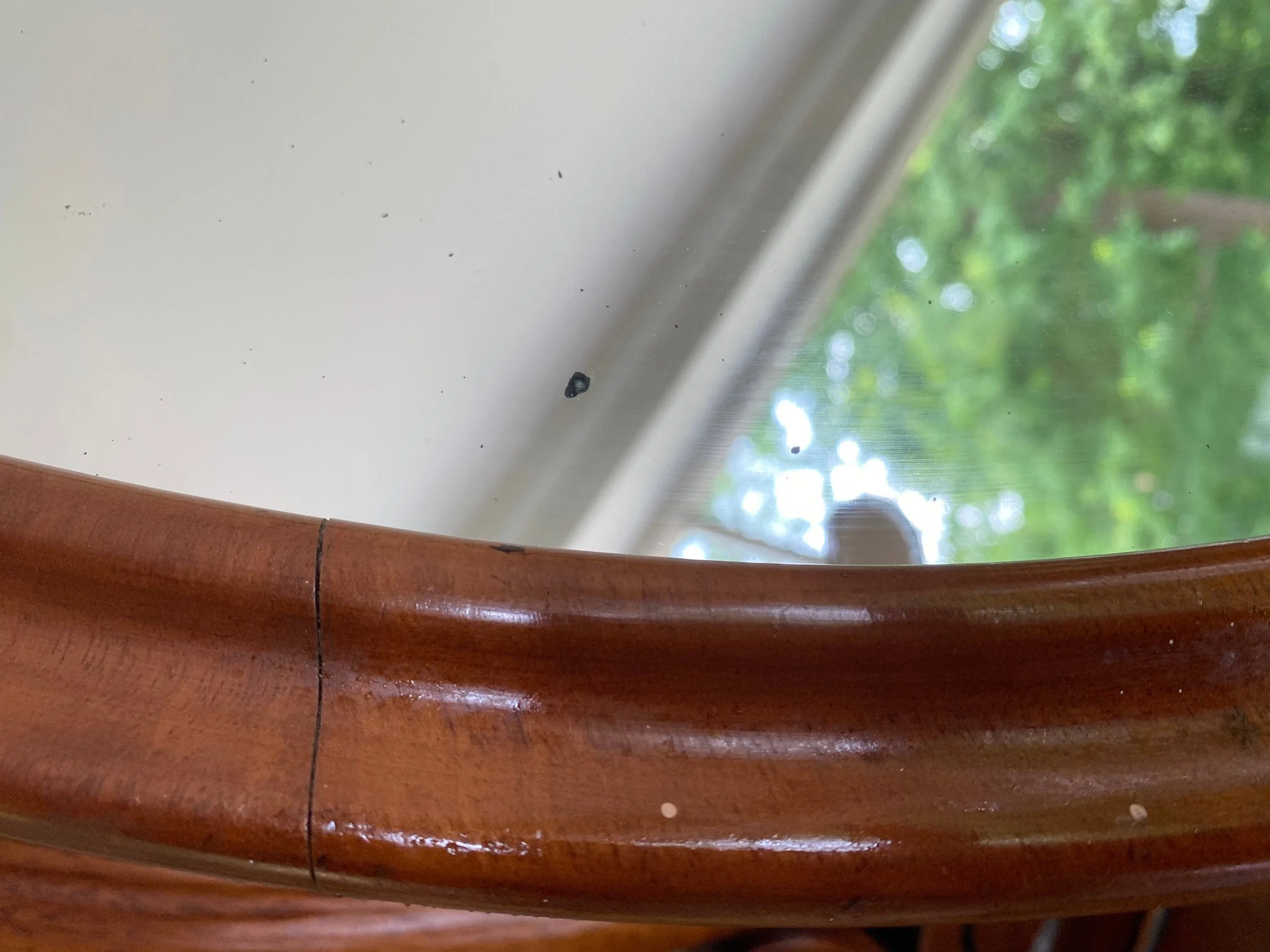 Excellent condition. Just a couple of small patches of tarnishing on the mirror