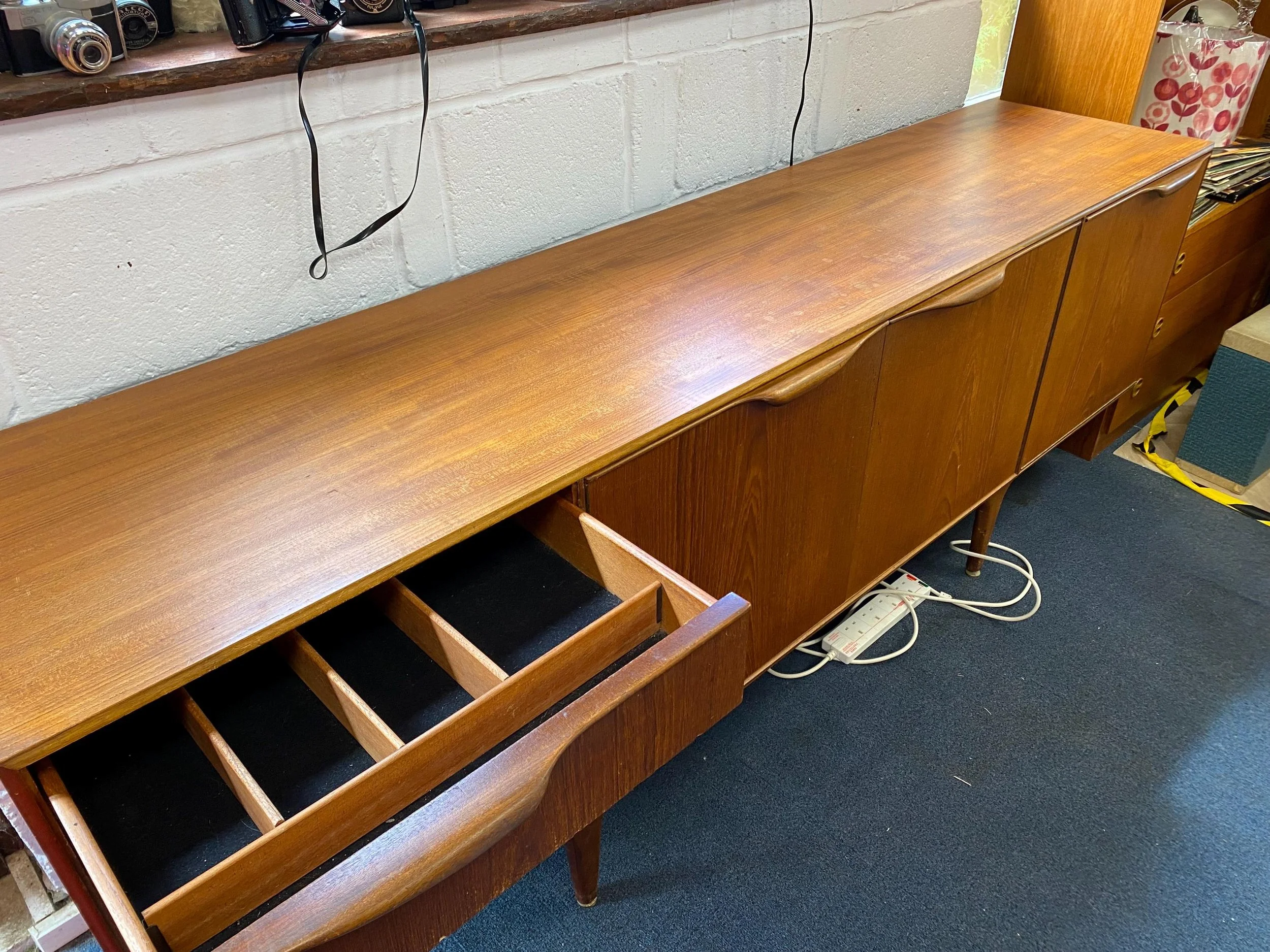 Store › Vintage 1960s Danish style mid century teak sideboard by McIntosh Image 1 of 6 Image 2 of 6 Image 3 of 6 Image 4 of 6 Image 5 of 6 Image 6 of 6 Vintage 1960s Danish style mid century teak sideboard by McIntosh £0.16 AWAITING RESTORATIONPRICE ON REQUESTCOLLECTION IN PERSON OR BY COURIERDanish style mid century teak sideboard by McIntosh.Three cupboards including a pull out cocktail server Three drawers, top has felt lined cutlery compartmentsSleek minimalist design210cm wide x 46cm deep x 76cm high Very good condition, will be fully restored prior to sale. Please contact me for more details. Purchase Added! AWAITING RESTORATIONPRICE ON REQUESTCOLLECTION IN PERSON OR BY COURIERDanish style mid century teak sideboard by McIntosh.Three cupboards including a pull out cocktail server Three drawers, top has felt lined cutlery compartmentsSleek minimalist design210cm wide x 46cm deep x 76cm high Very good condition, will be fully restored prior to sale. Please contact me for more details. Reviews Reviewer Name Review Date Star Rating Description Posted on Etsy Product Show More