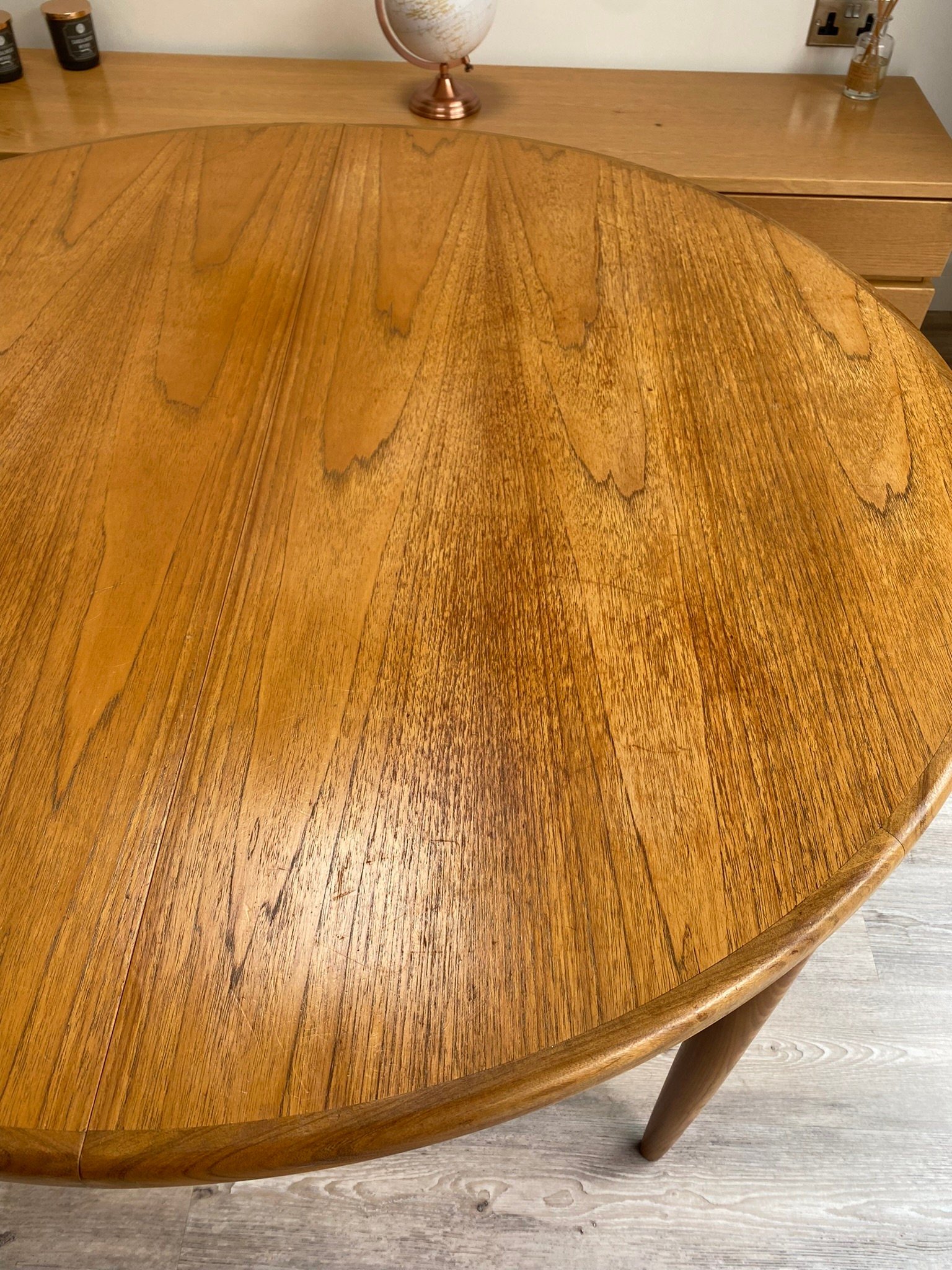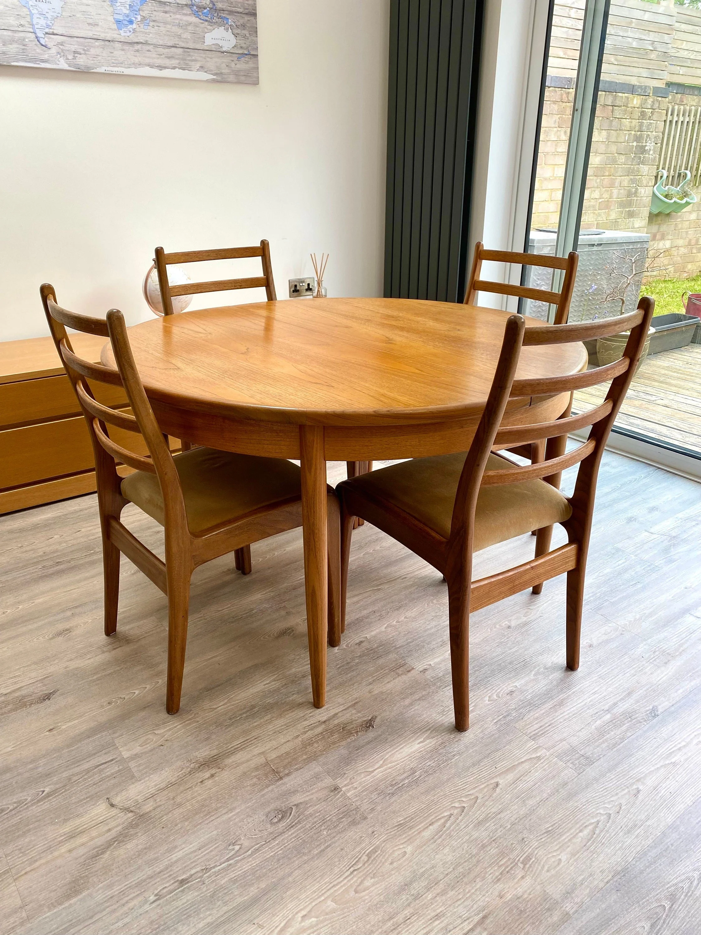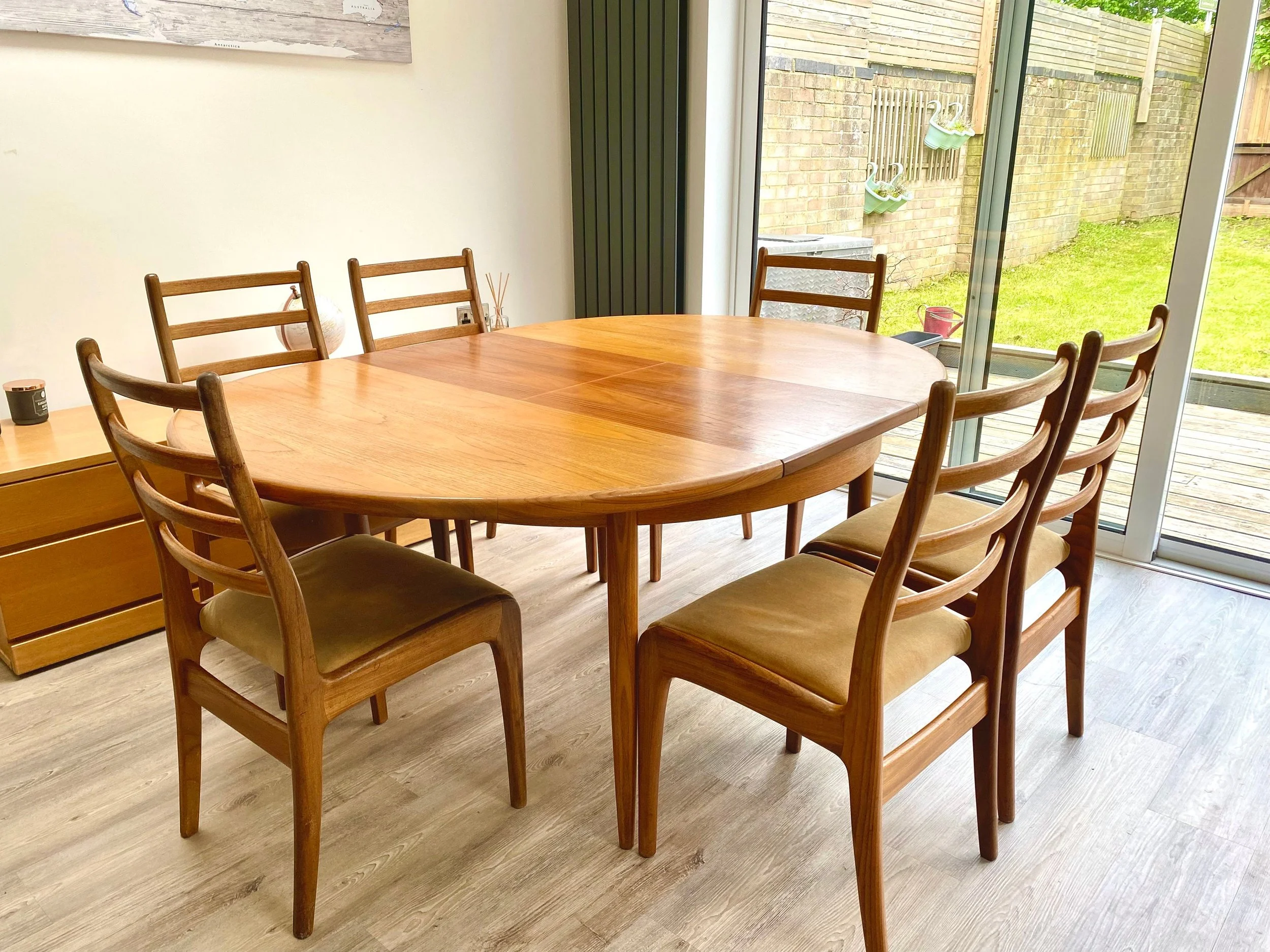 Vintage 1960s mid century Danish style extending table and six chairs by G Plan
