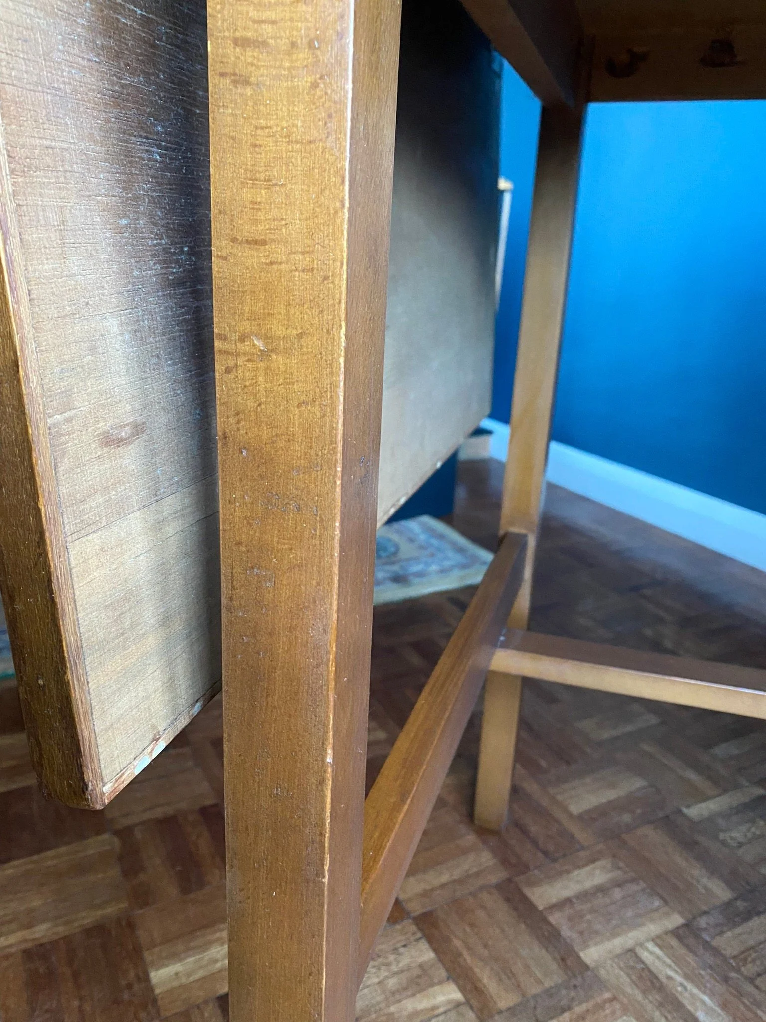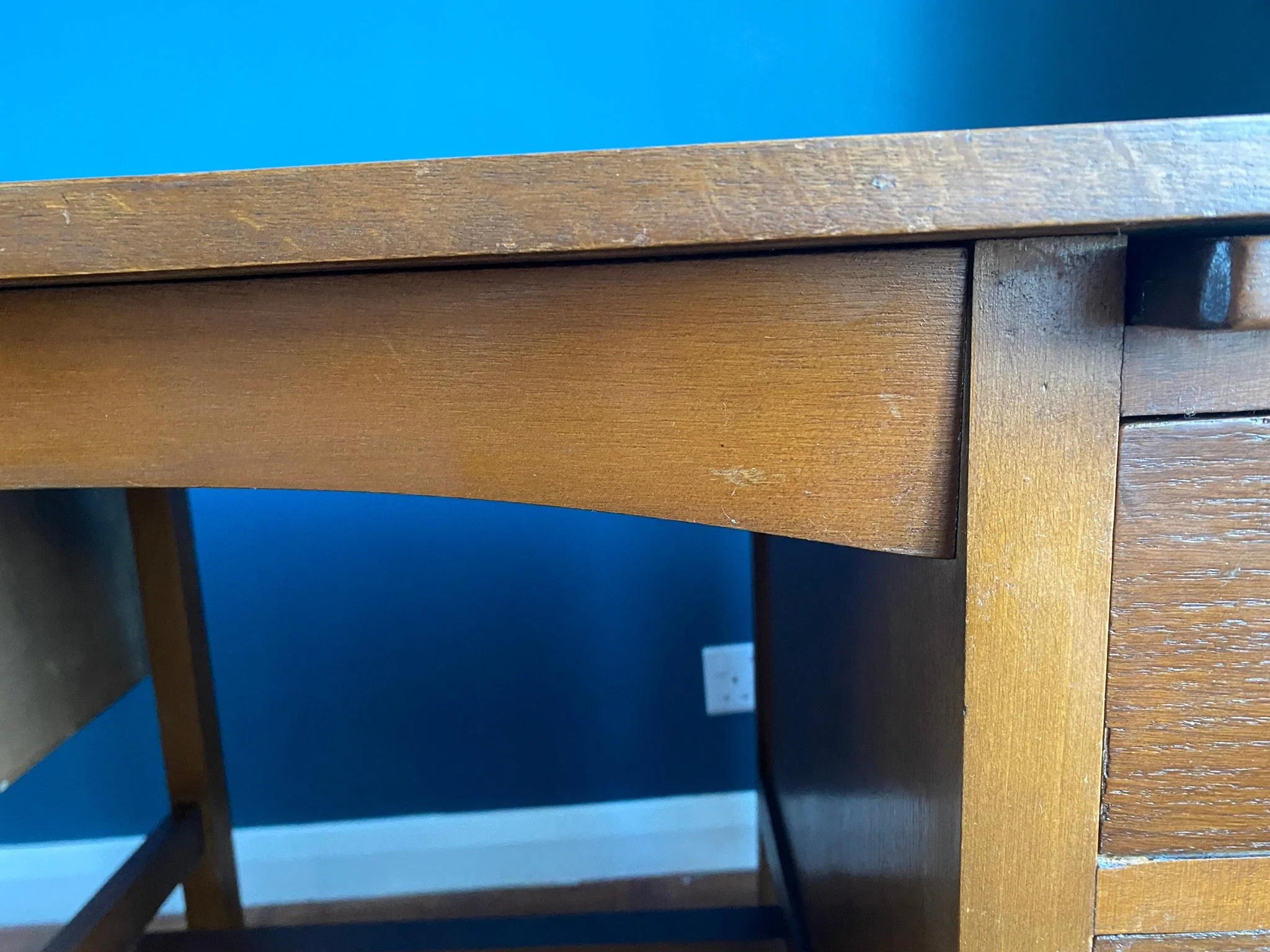 Has been oiled and polished. There is the odd small mark from age and use and a small water mark on the top, see photos, but in very good condition