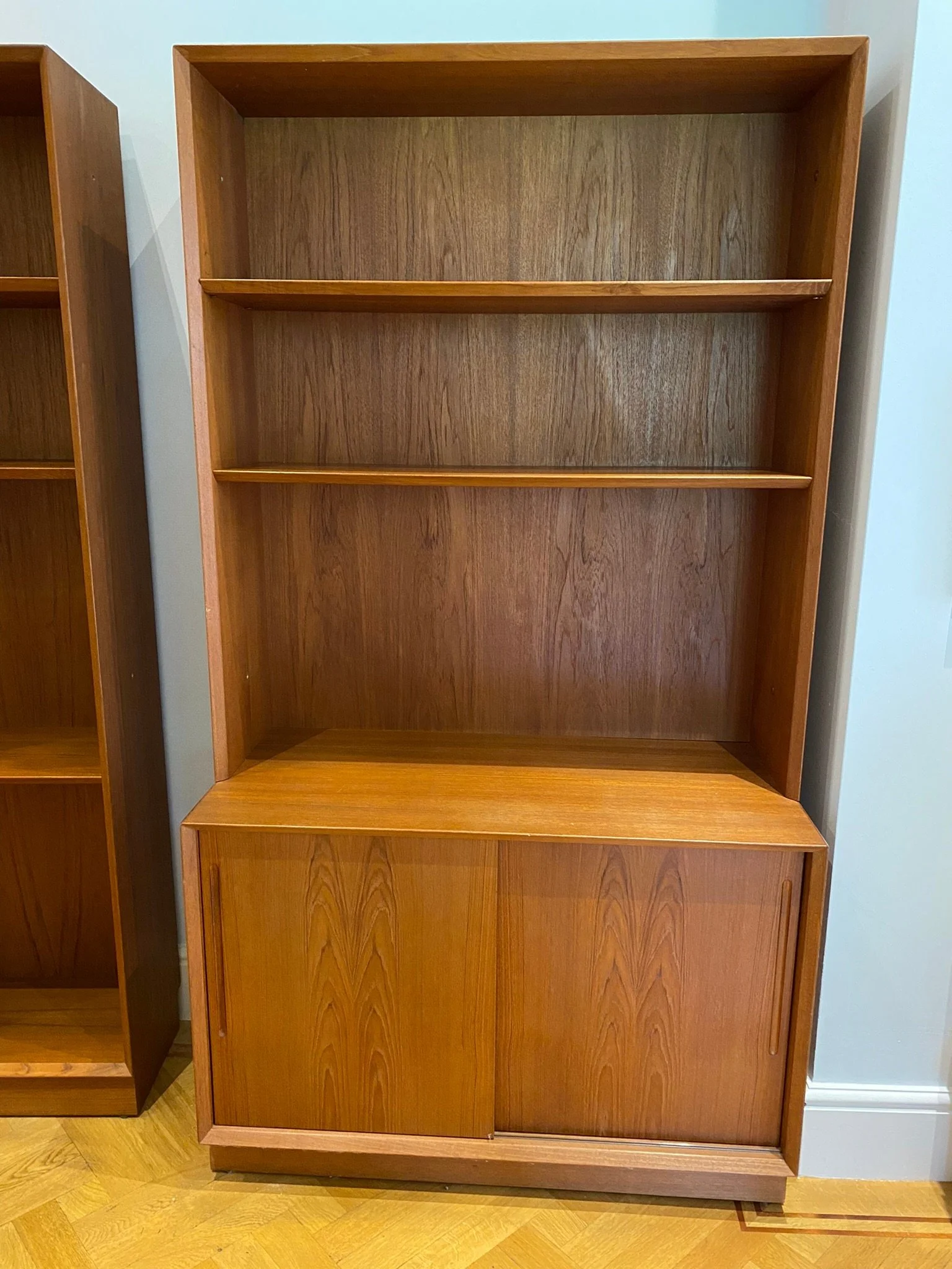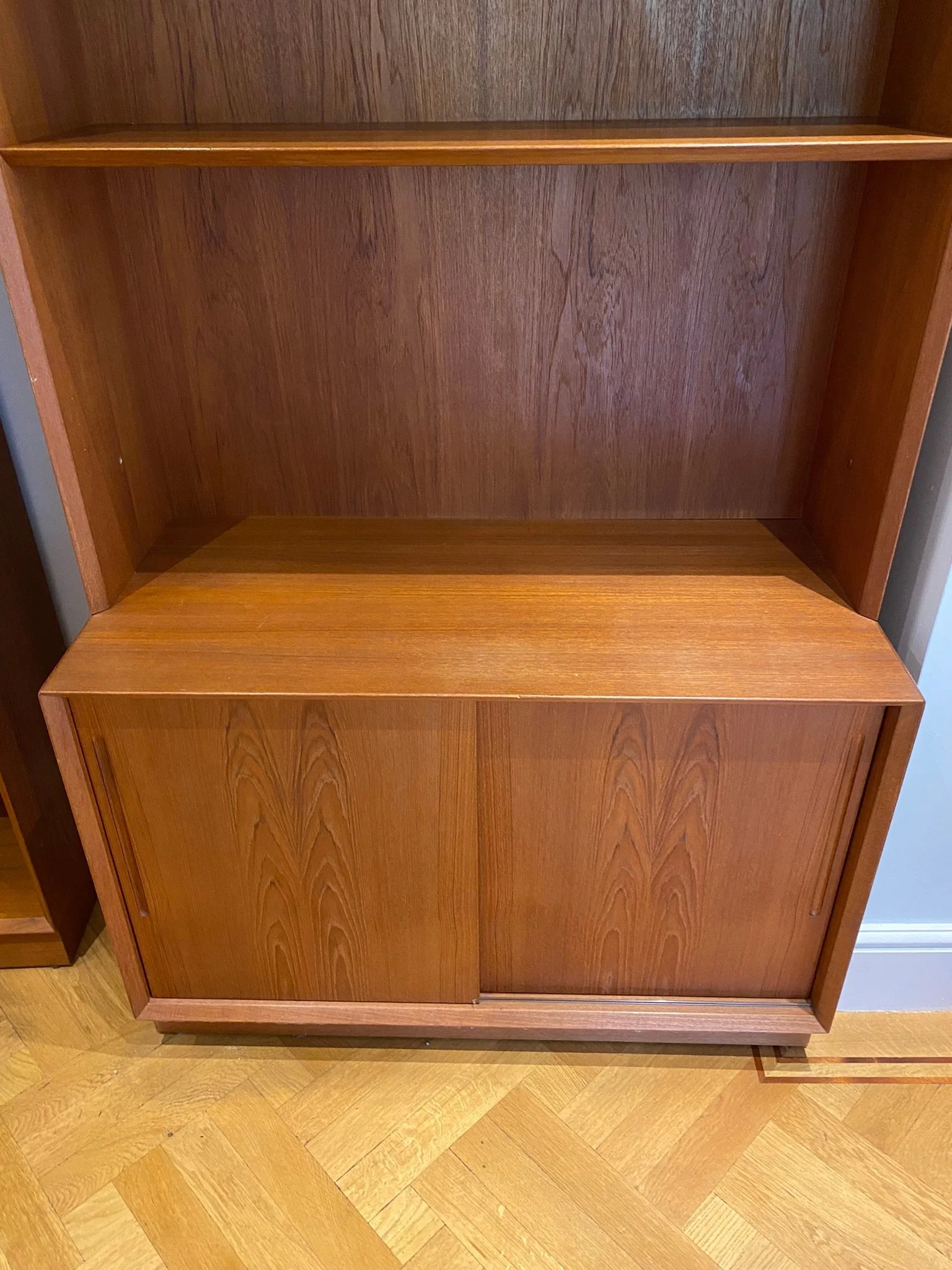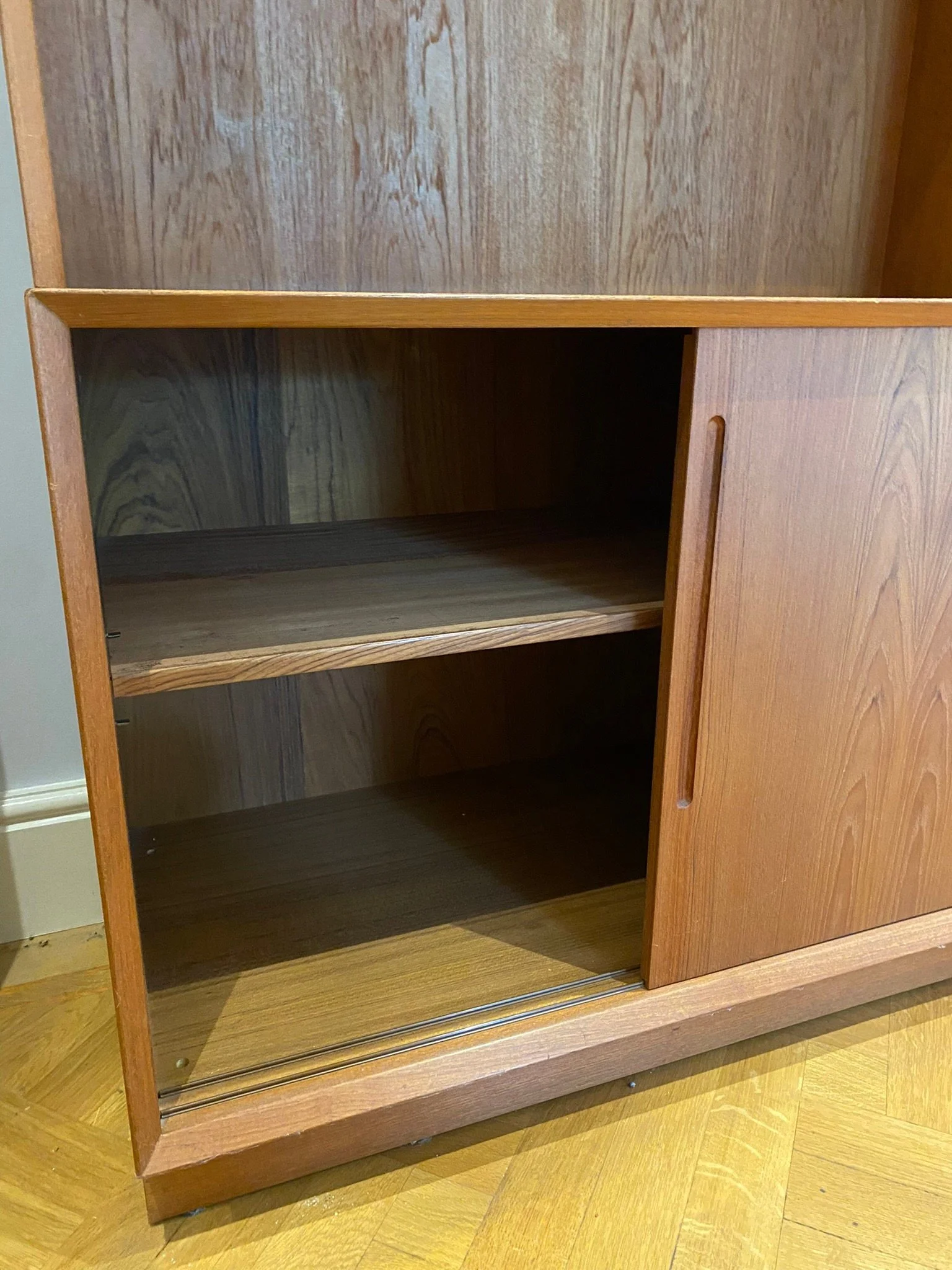 Vintage Mid Century Danish Teak Bookcase Sliding Doors