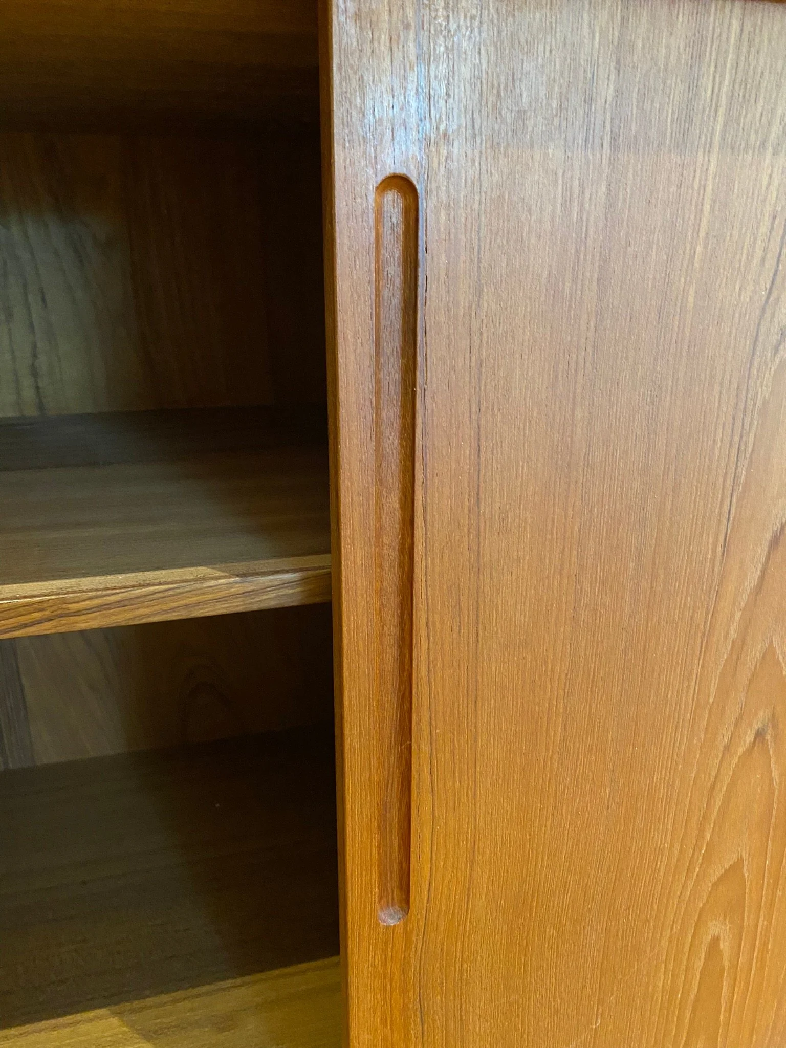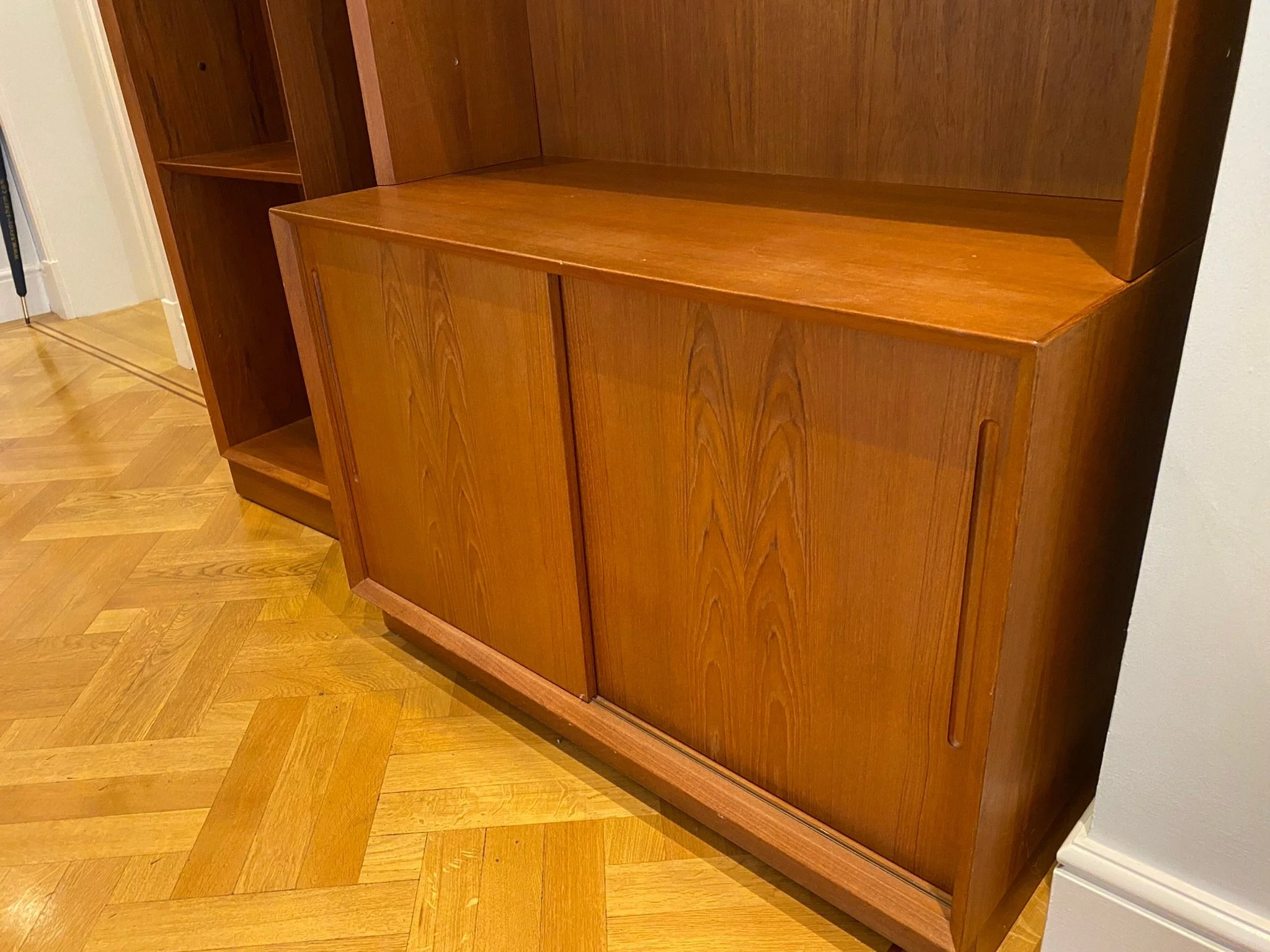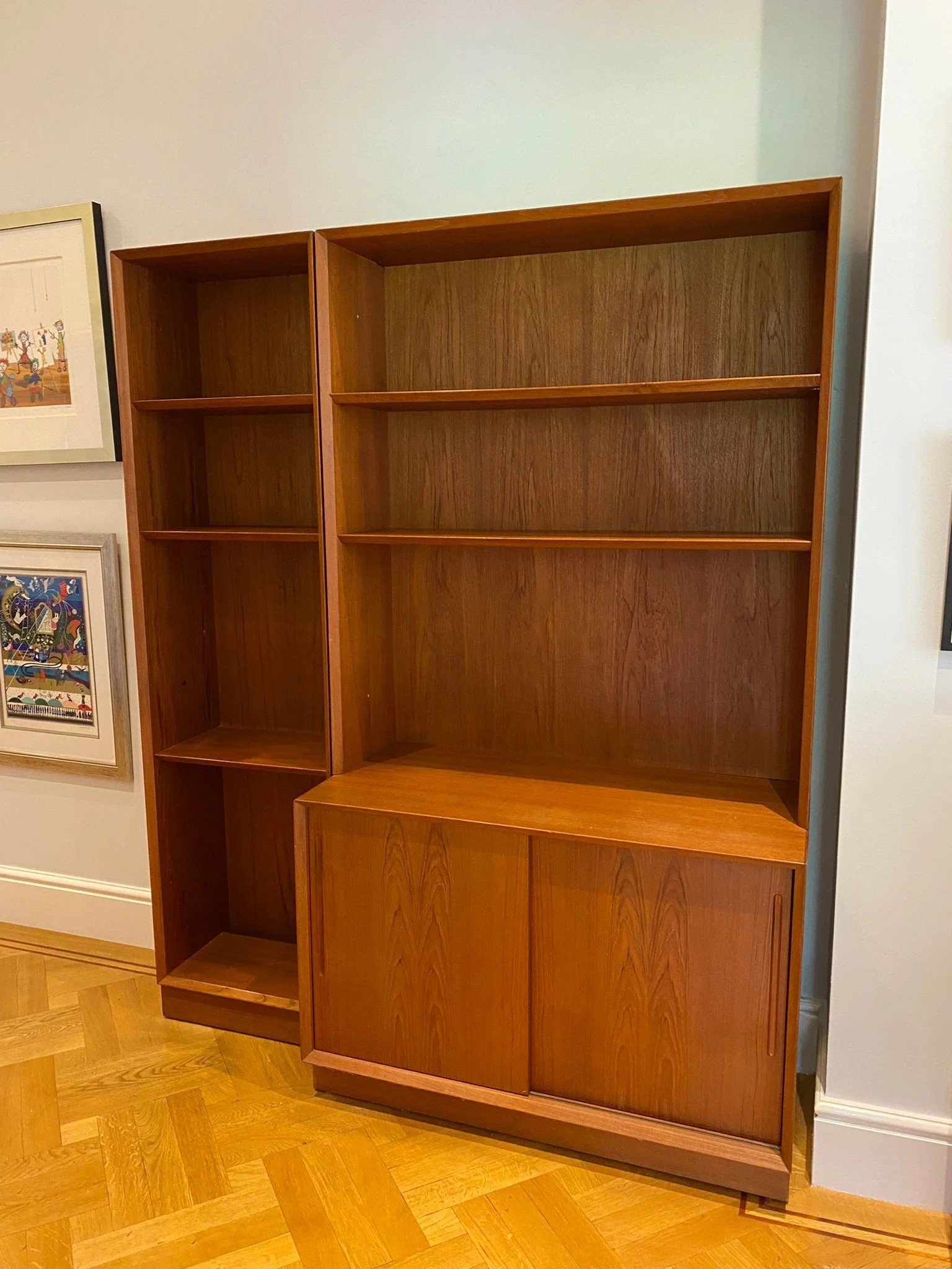 Vintage Mid Century Danish Teak Bookcase Sliding Doors
