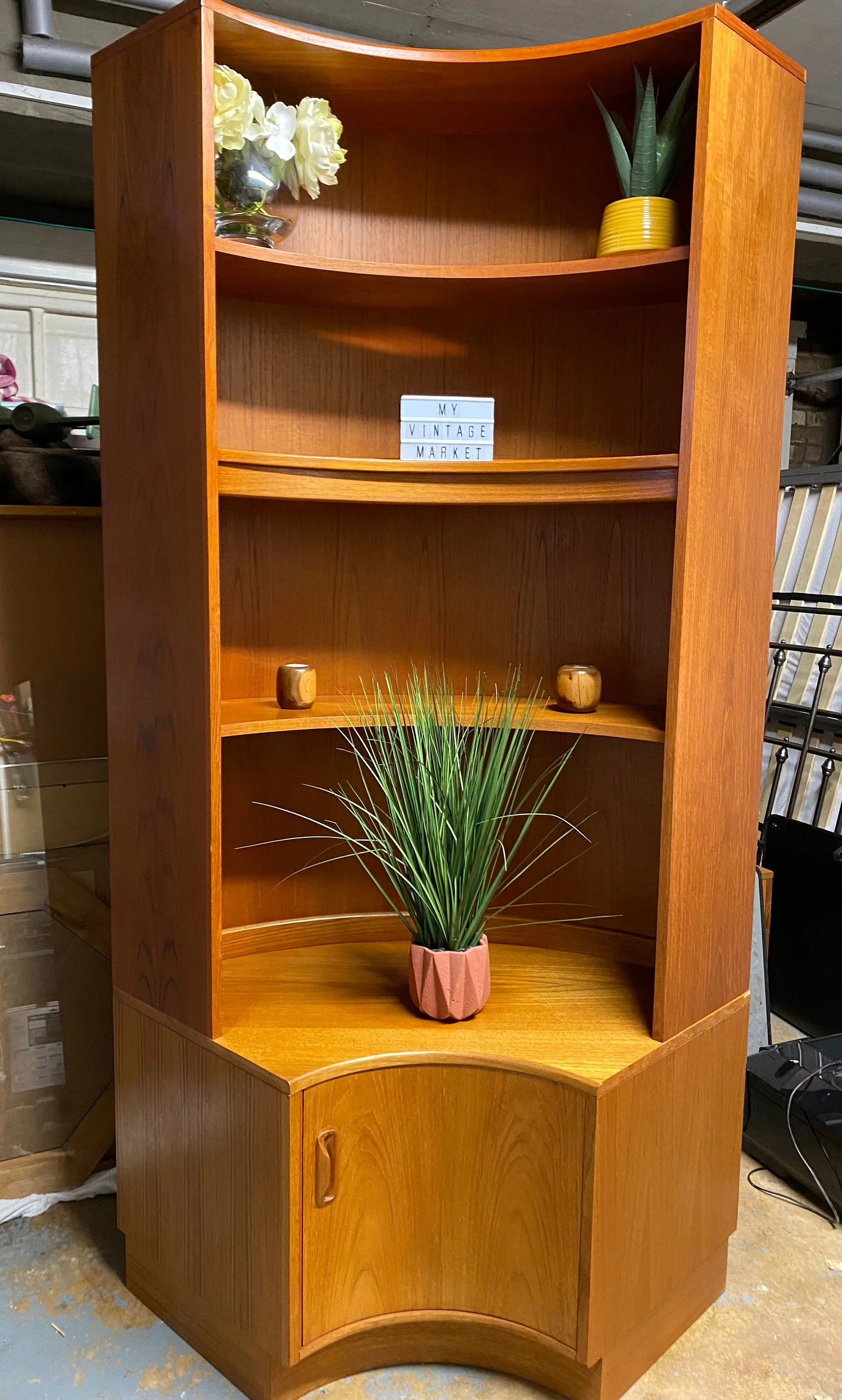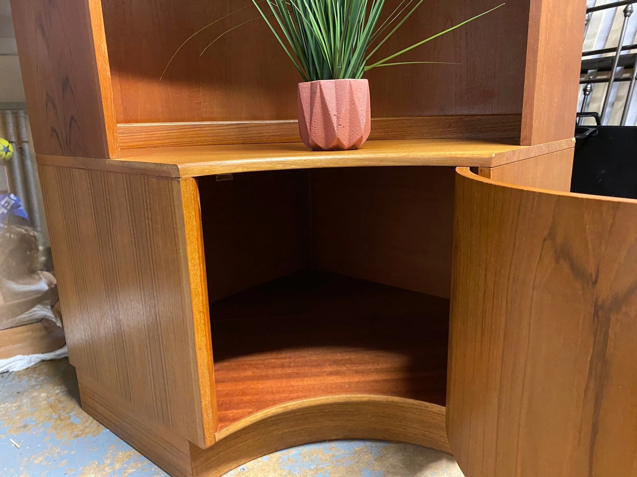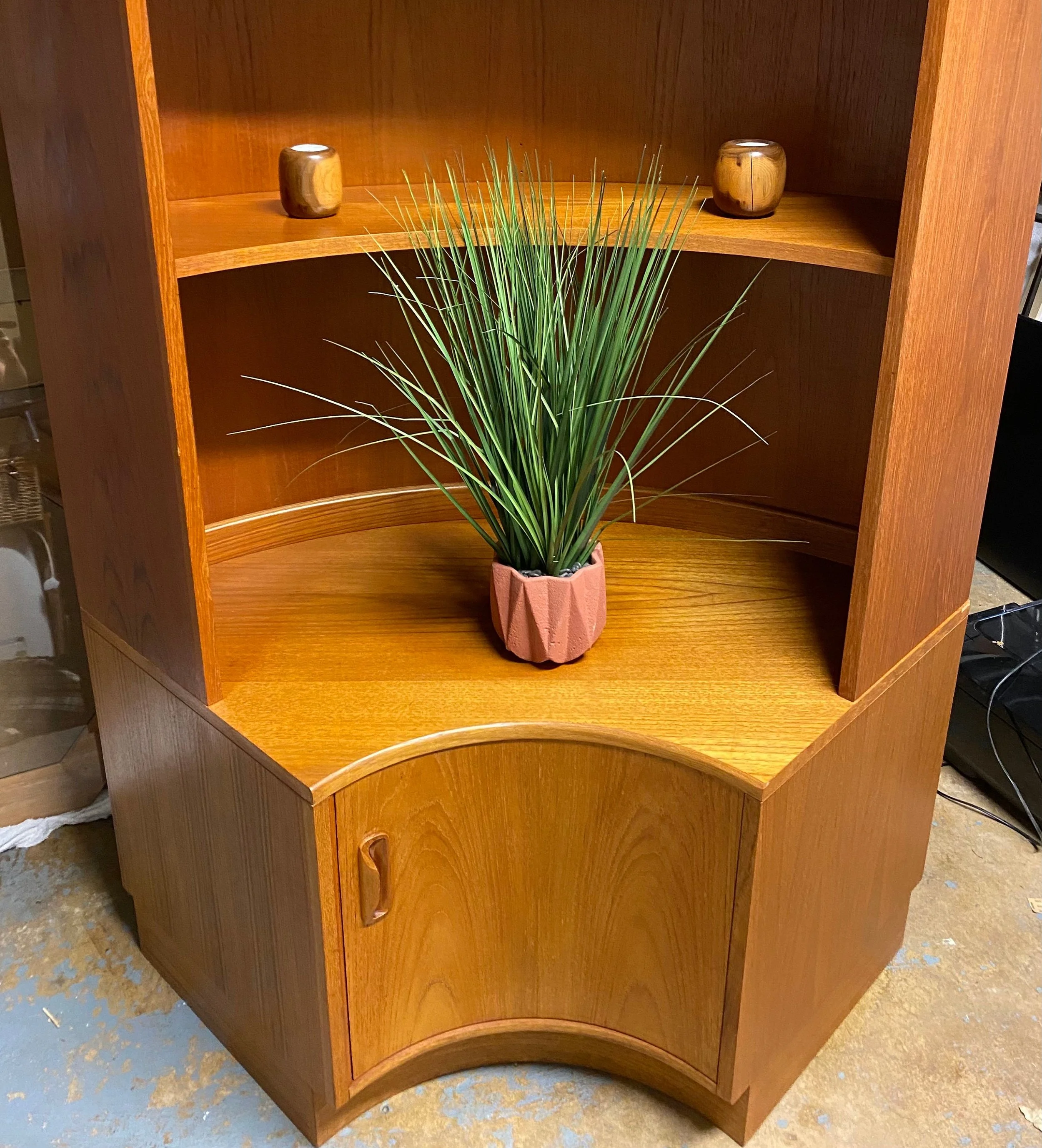 Has been refurbished with a clean, oil and polish Stunning mid century Danish style G-Plan modular inverted corner wall unit Made by E Gomme, from the Fresco line